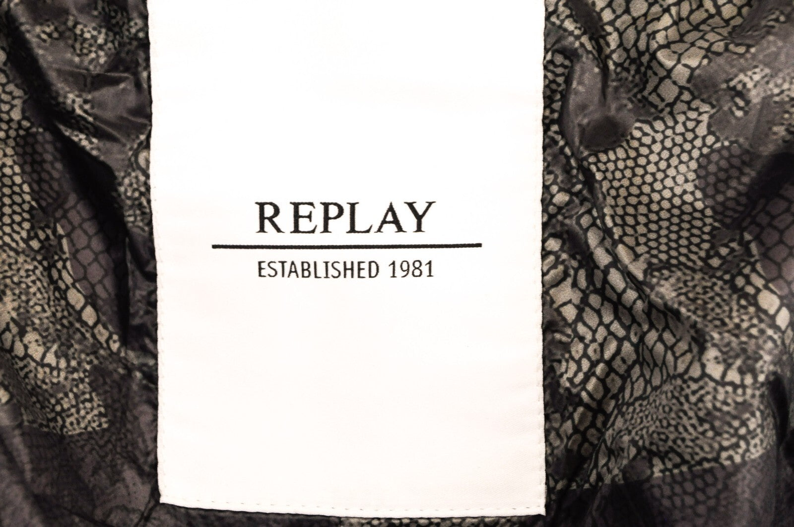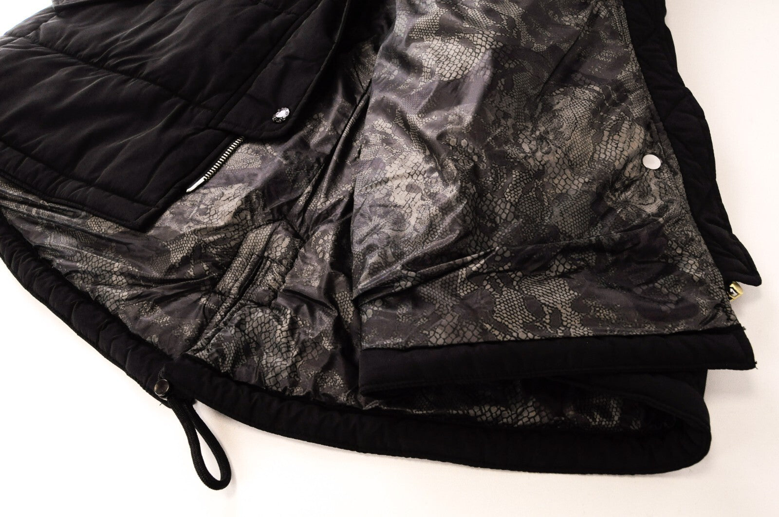 REPLAY Womens Jacket L Faux Fur Hooded Quilted Black Puffer Parka Long Sleeve