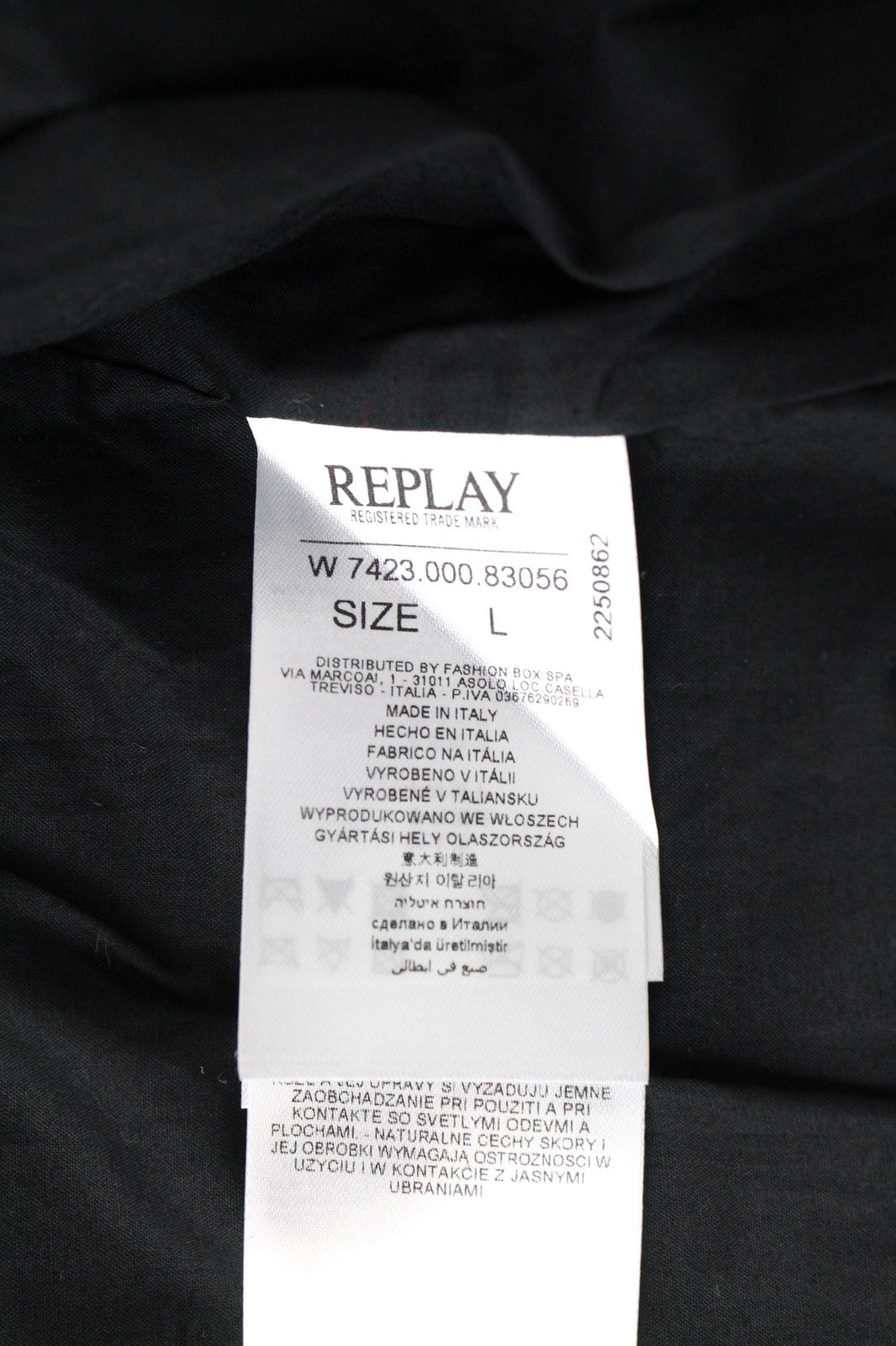 REPLAY Women's Moto Jacket L Black Zip-Up Short Lambskin Leather Lined Style