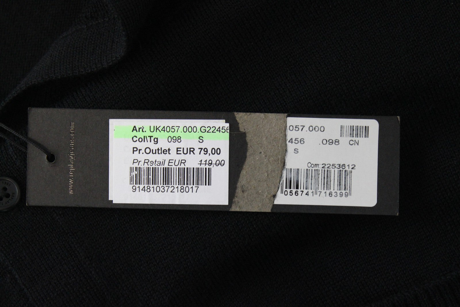 REPLAY Wool Cardigan S Knit Jumper Black Long Sleeve with Pocket
