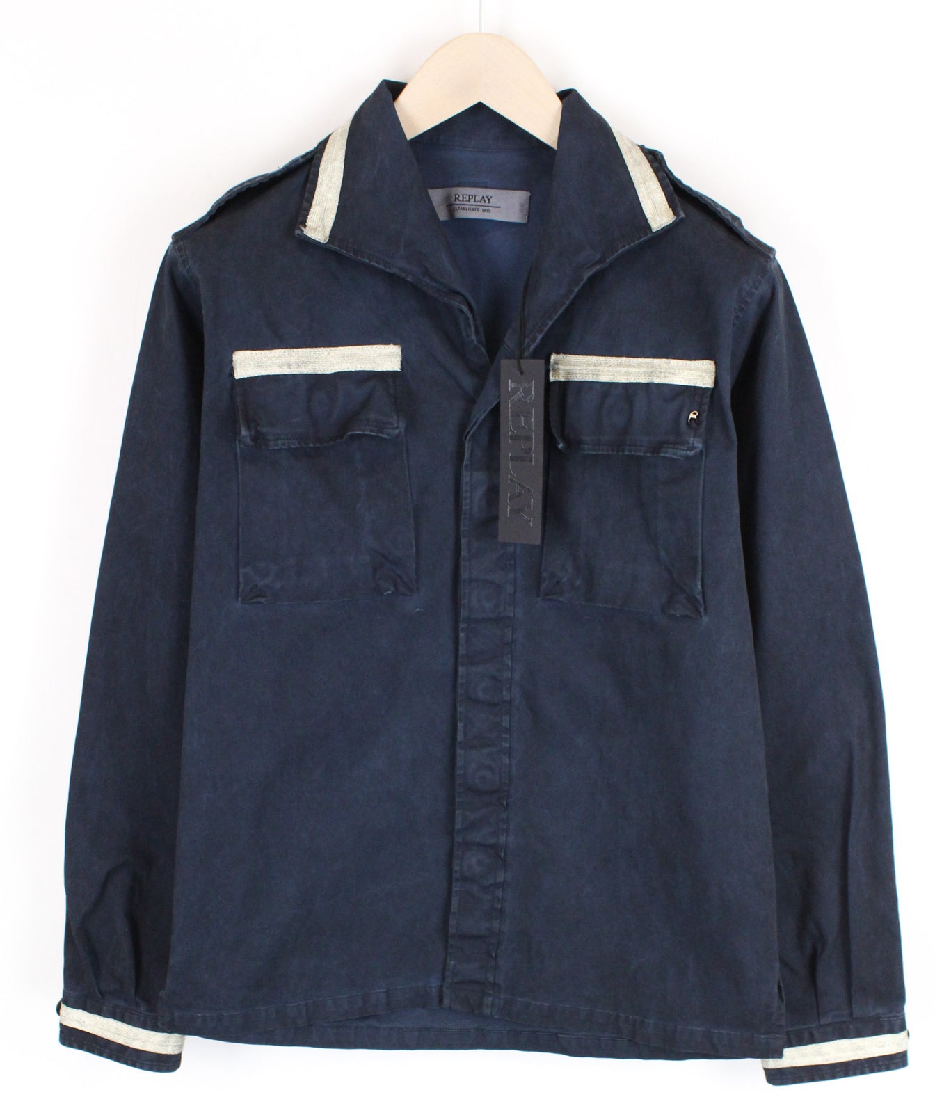 REPLAY Worker-Style Women Jacket M Dark Blue Short Overshirt Patched Pockets
