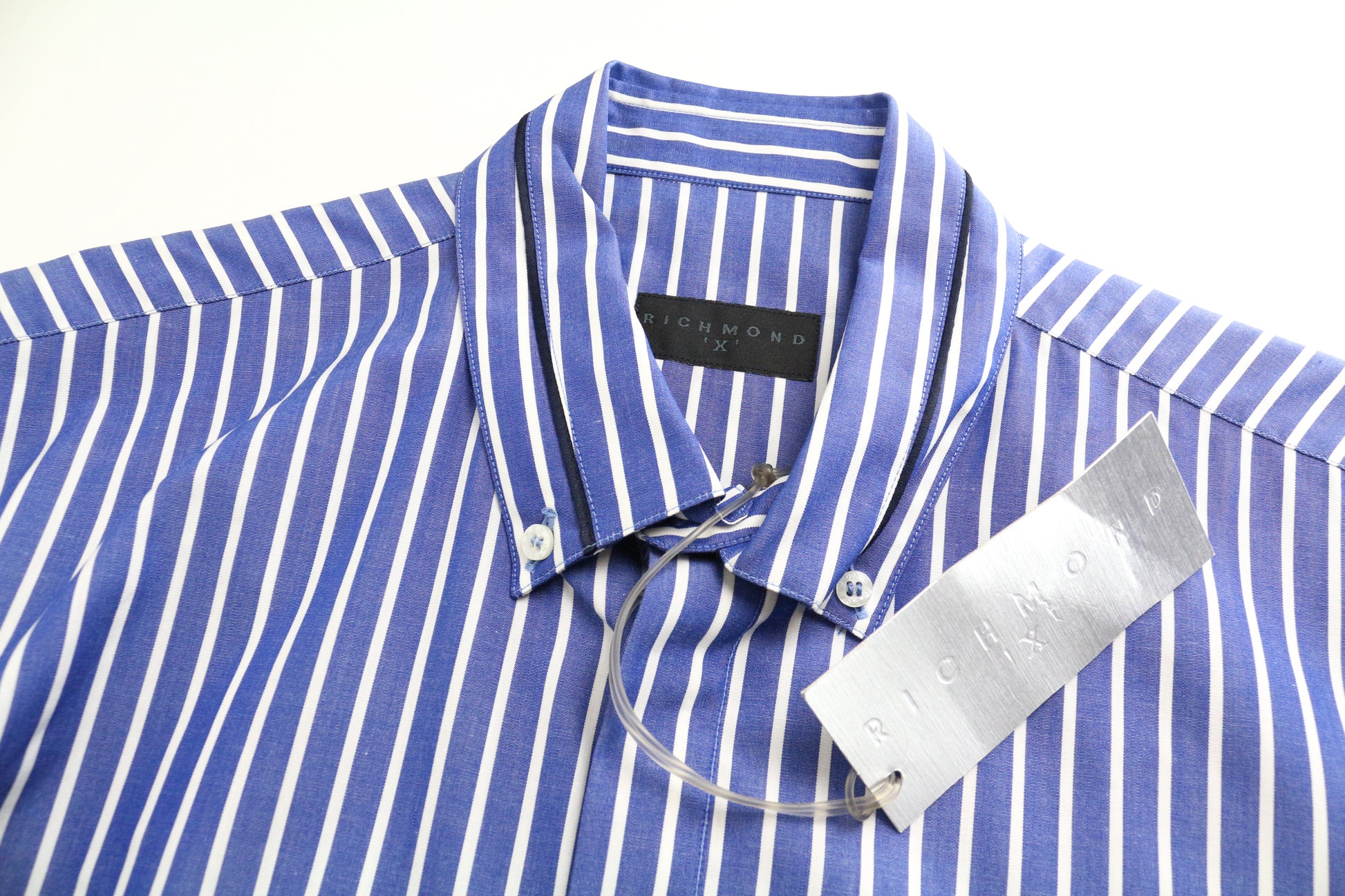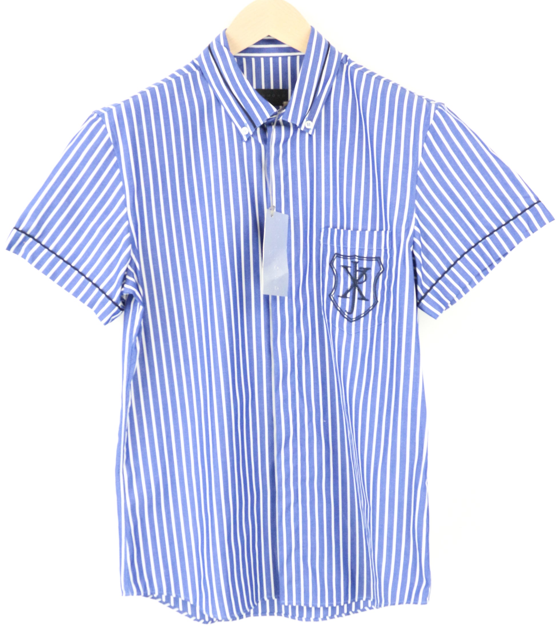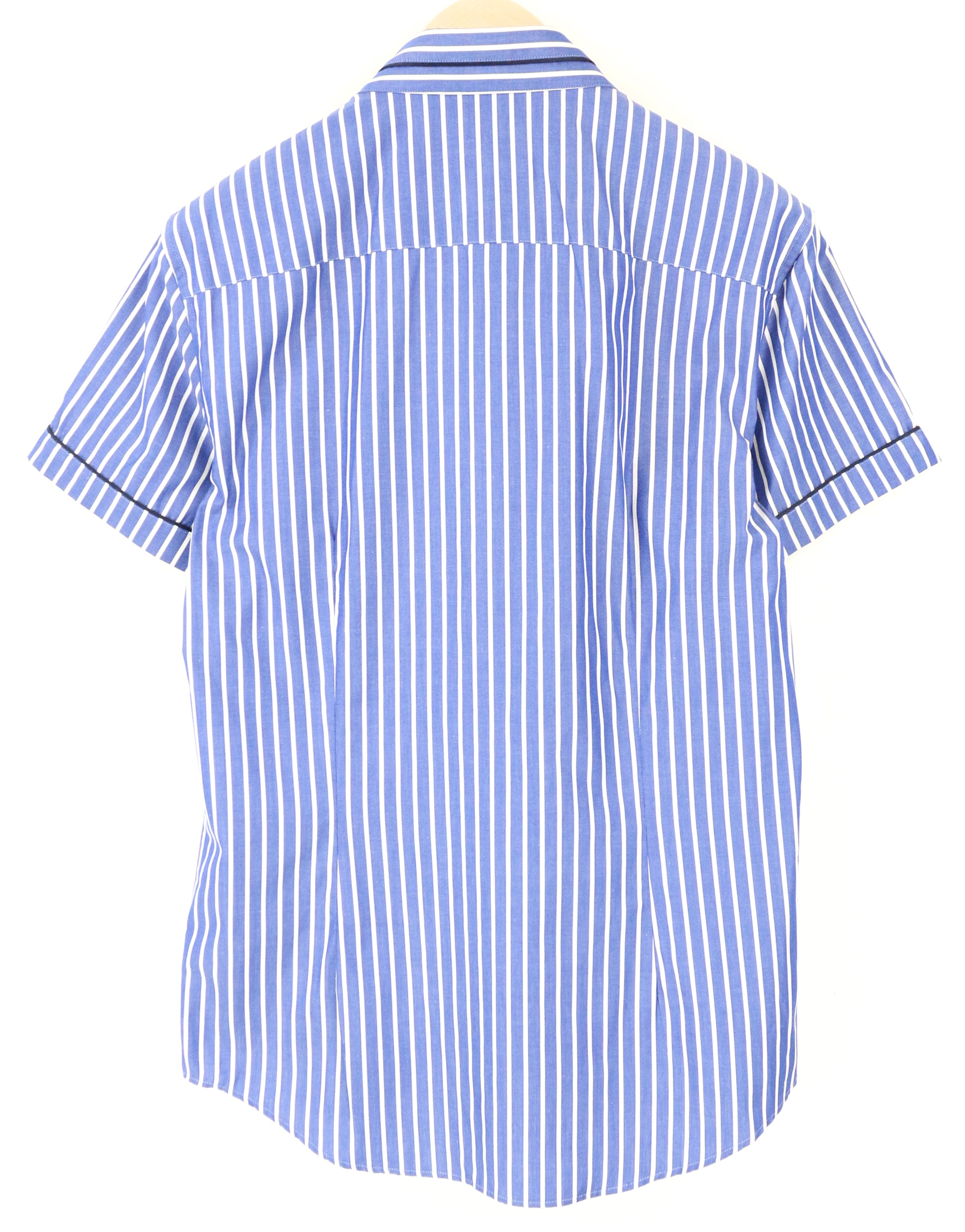 RICHMOND Men Shirt 48 Blue Logo Pure Cotton Striped Pocketed Short Sleeved