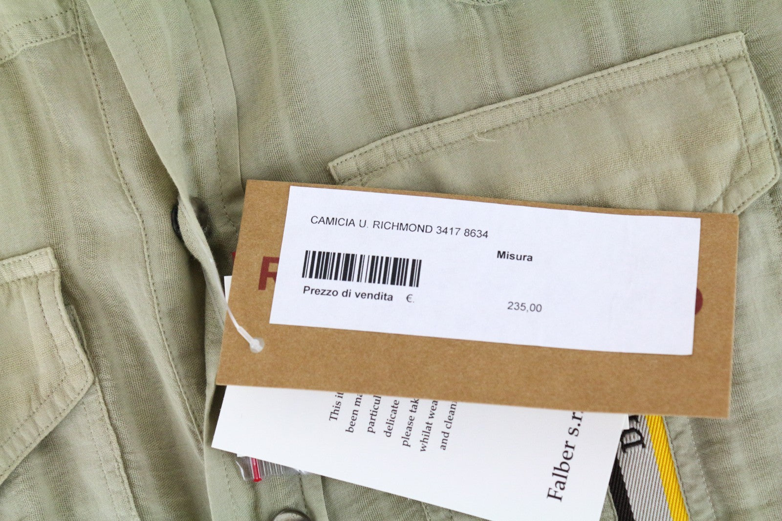 RICHMOND Men Shirt M Green Pure Cotton Striped Snaps Short Sleeved Pocketed