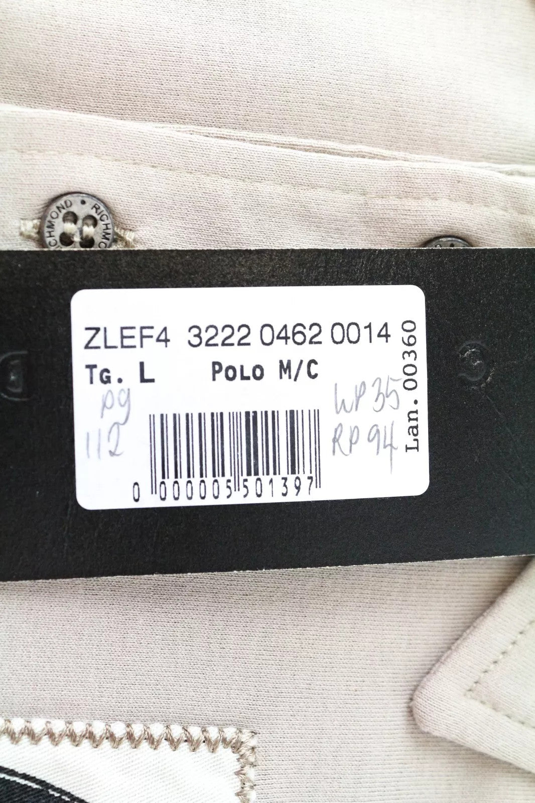 RICHMOND Men T-Shirt L Light Grey Pure Cotton Short Sleeved Logo Polo