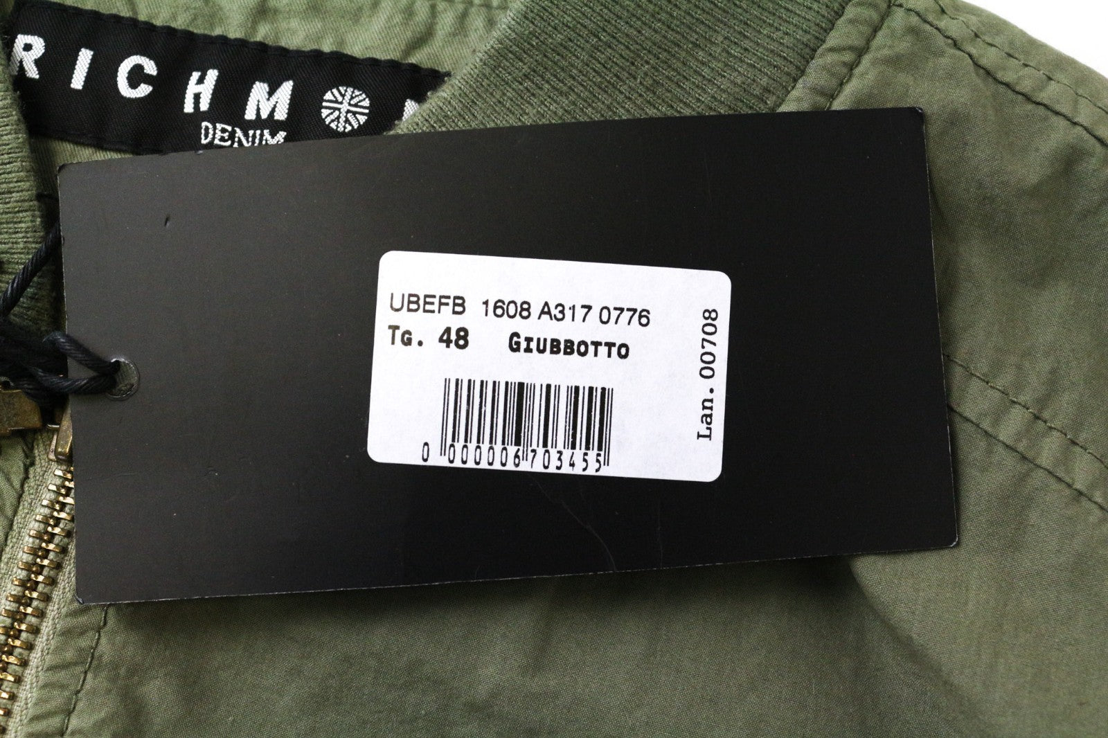 RICHMOND Men's Bomber Jacket 48 Green Pure Cotton Lightweight Casual Style