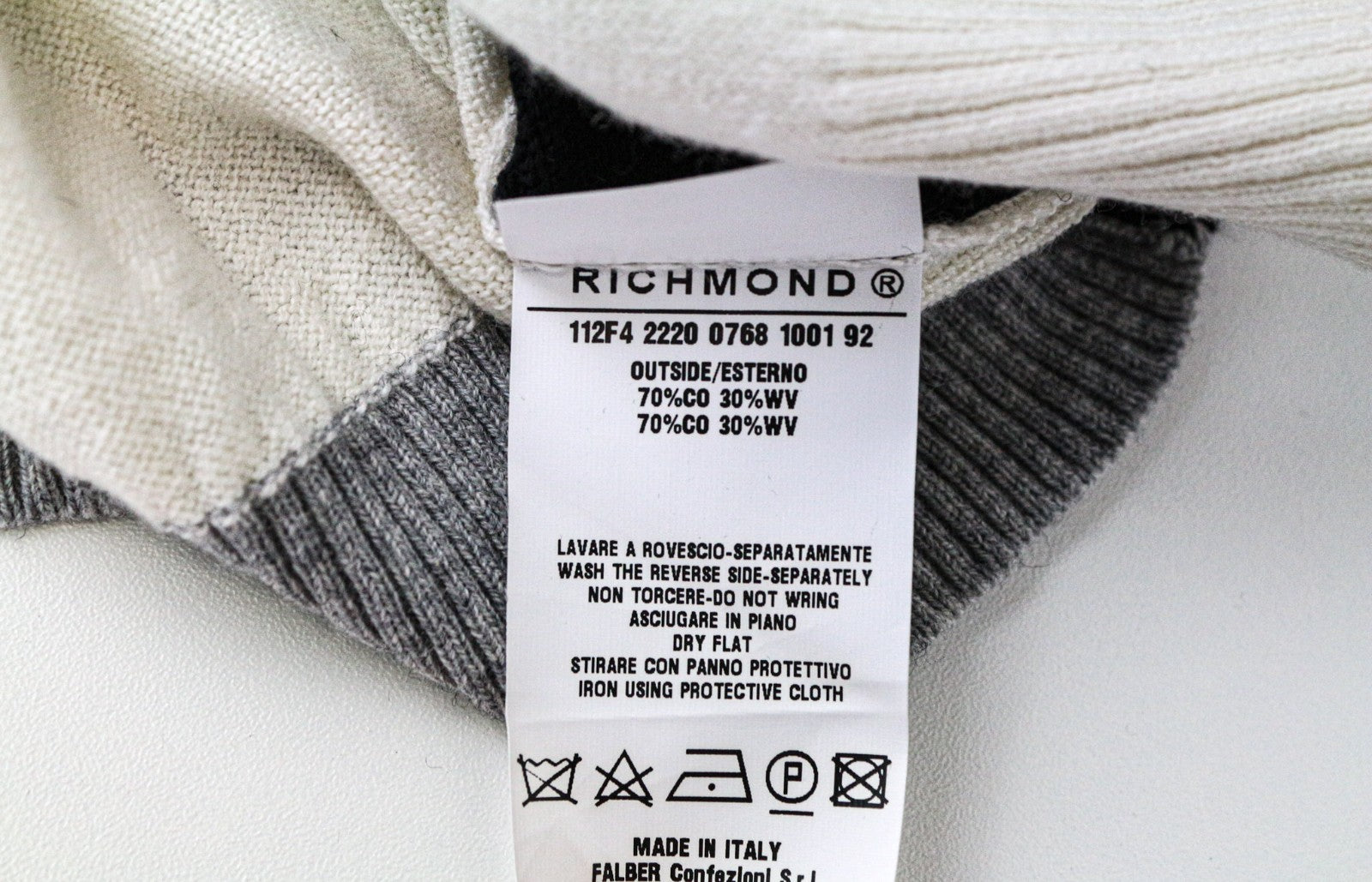 RICHMOND Men's Cardigan 50 Off-White Black Cotton Wool Long Sleeve Zip