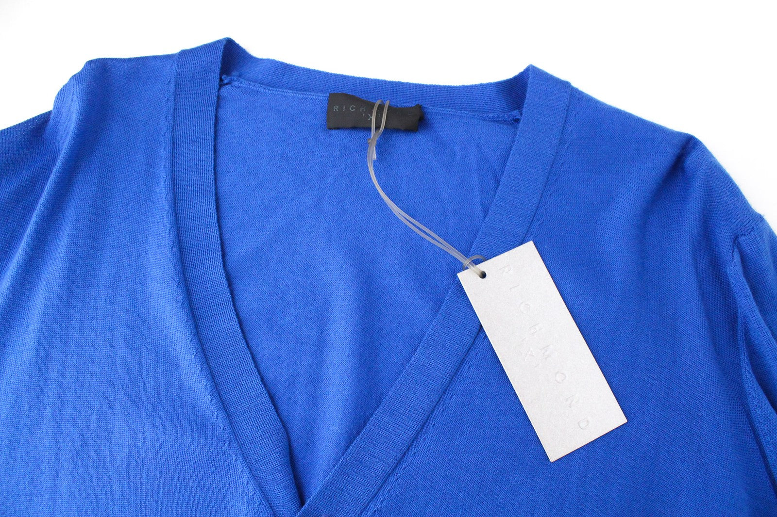 RICHMOND Men's Cardigan IT50 Blue Fitted Sweater Virgin Wool Tight-Knitted
