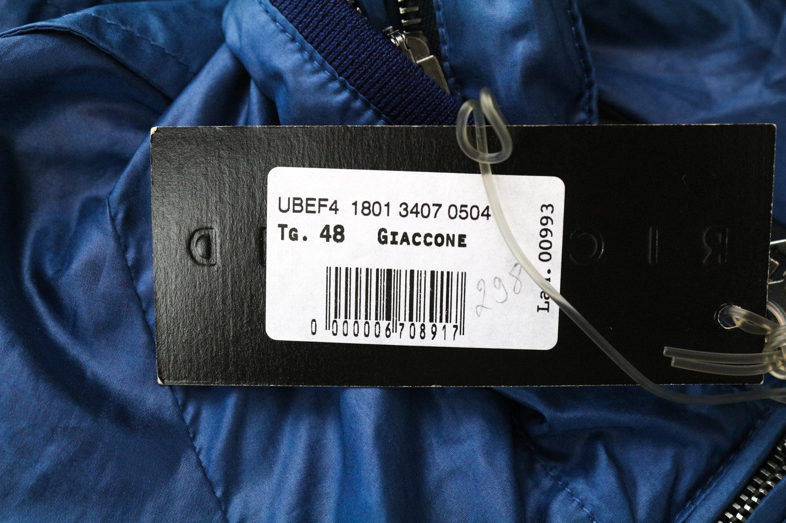 RICHMOND Men's Jacket 48 Blue Lightweight Hooded Zip Coat Long Sleeved