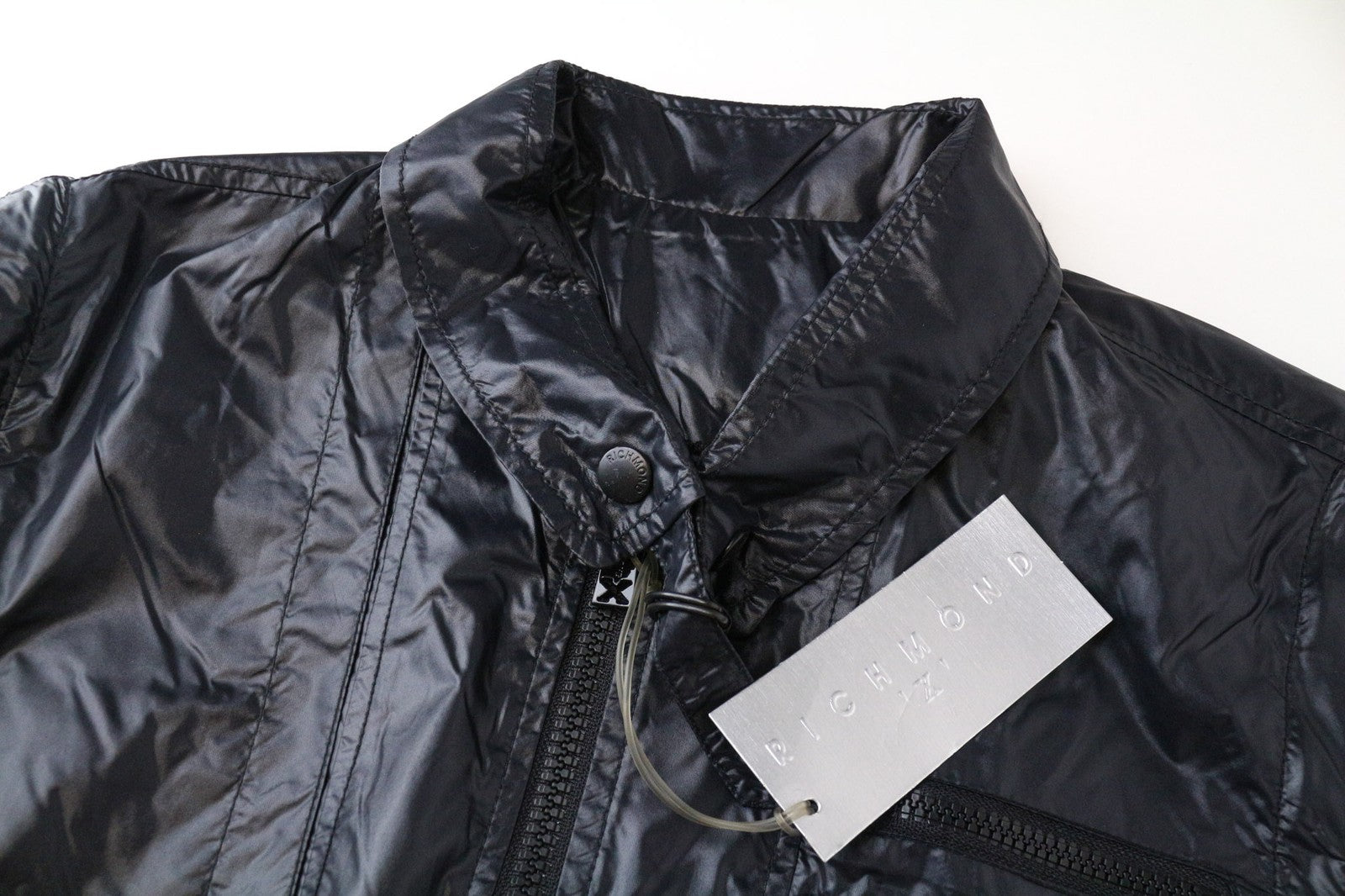 RICHMOND Men's Jacket 48 Navy Blue Bomber Long Sleeve Multi Pocket Zipped