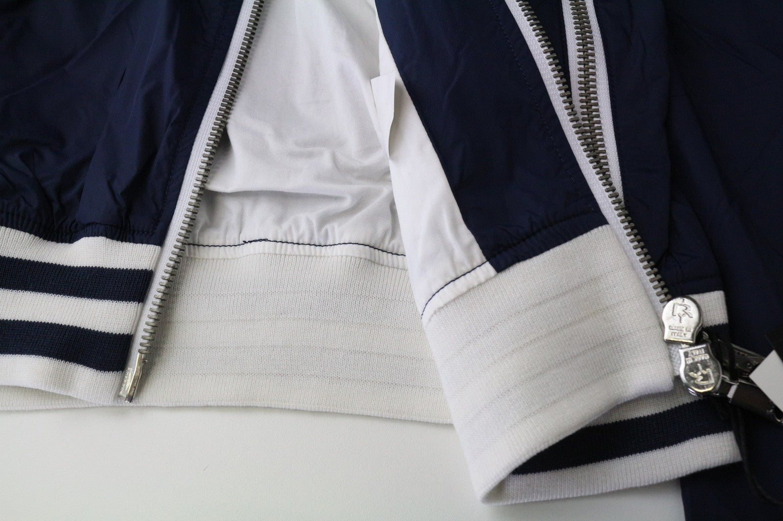 RICHMOND Men's Jacket IT46 Navy Blue Baseball Ribbed Lined Designer High Neck