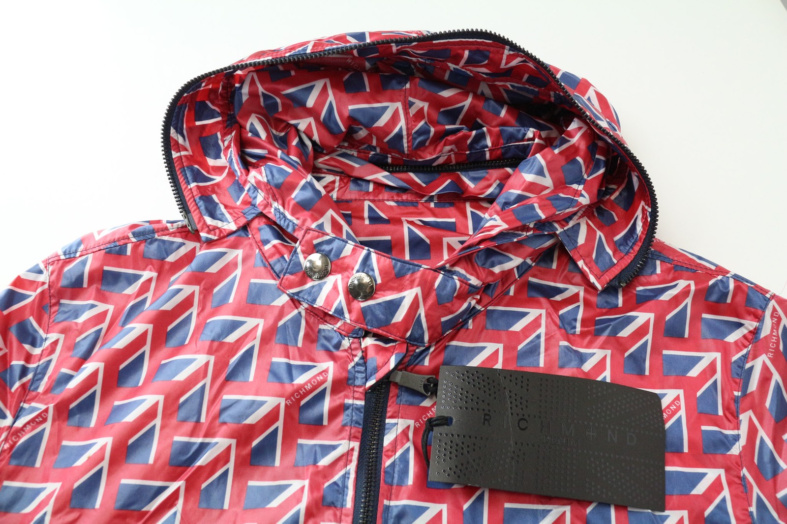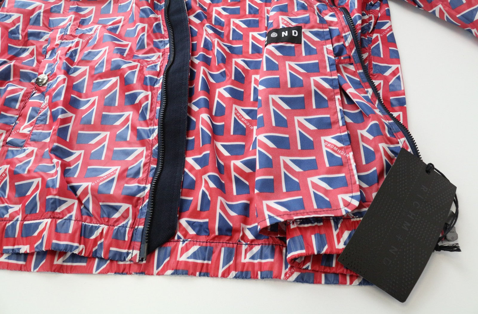 RICHMOND Men's Jacket IT48 Red Hooded Windbreaker Lightweight Zip Graphic