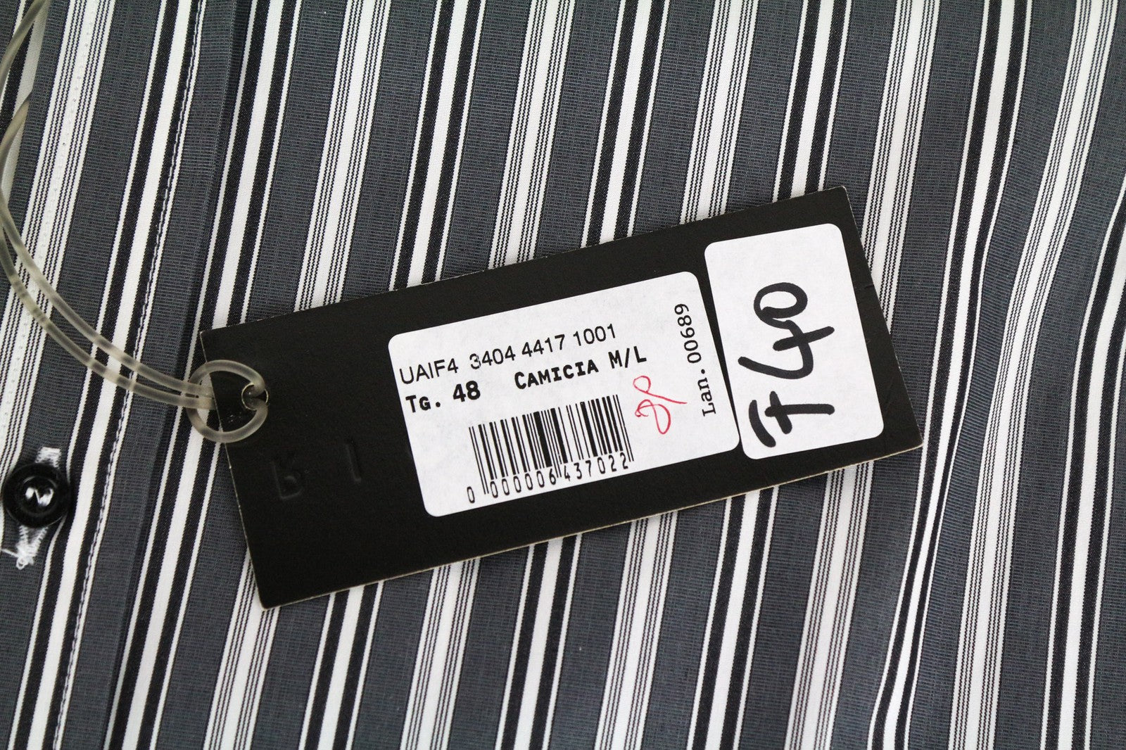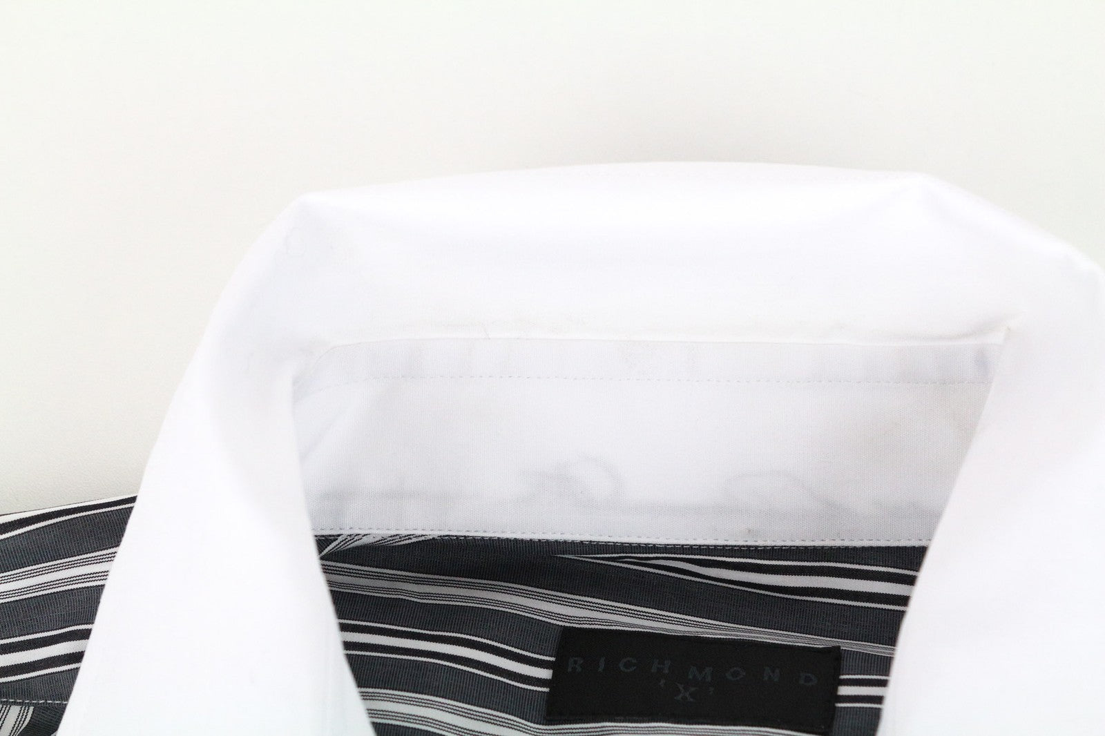 RICHMOND Men's M/L Grey Blue Cotton Blend Shirt w/ Stretch Stripes