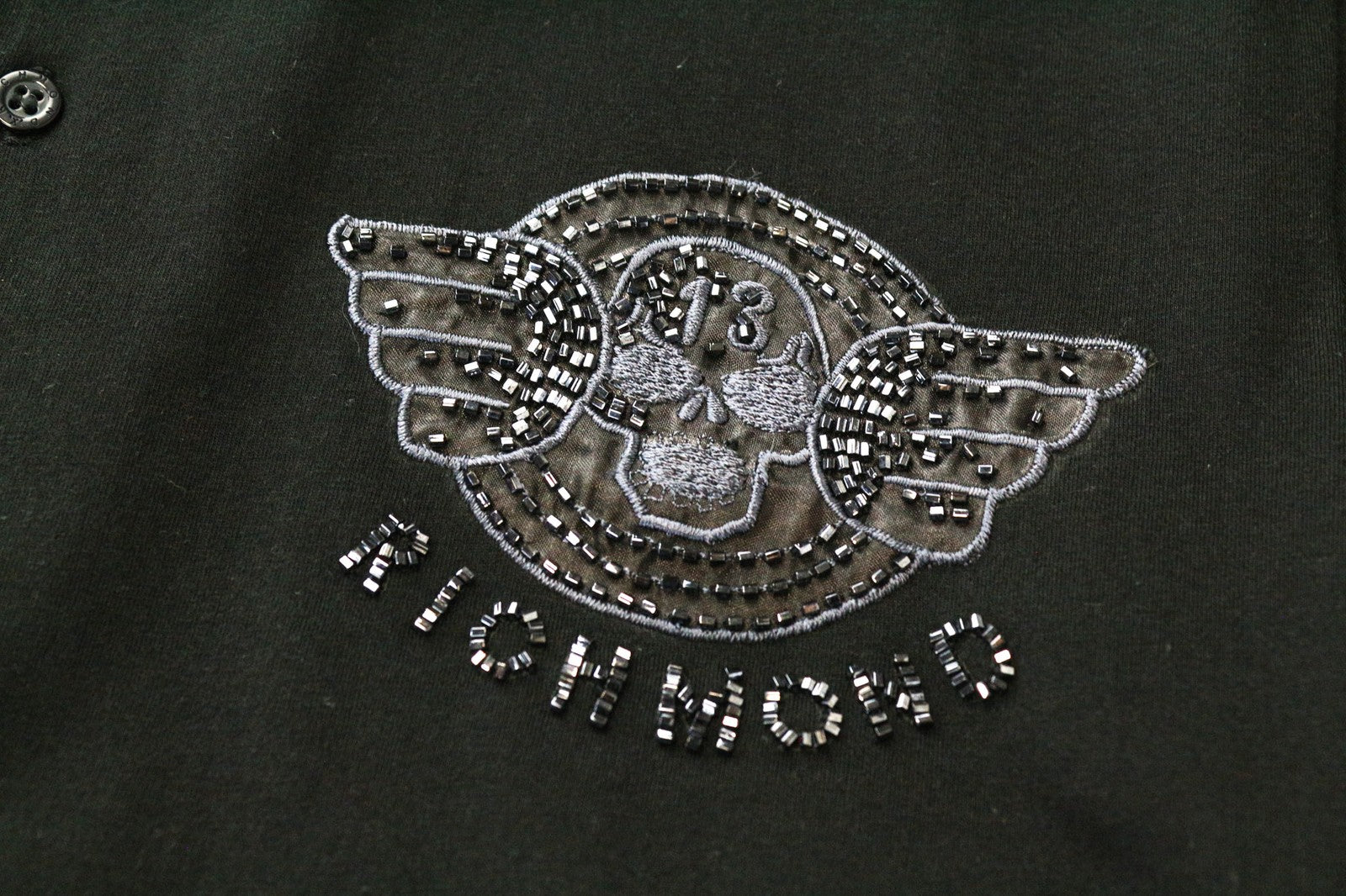 RICHMOND Men's Polo T-Shirt L Black Designer Logo Patched Pure Cotton Classic