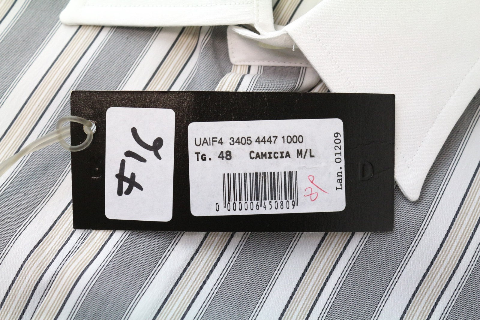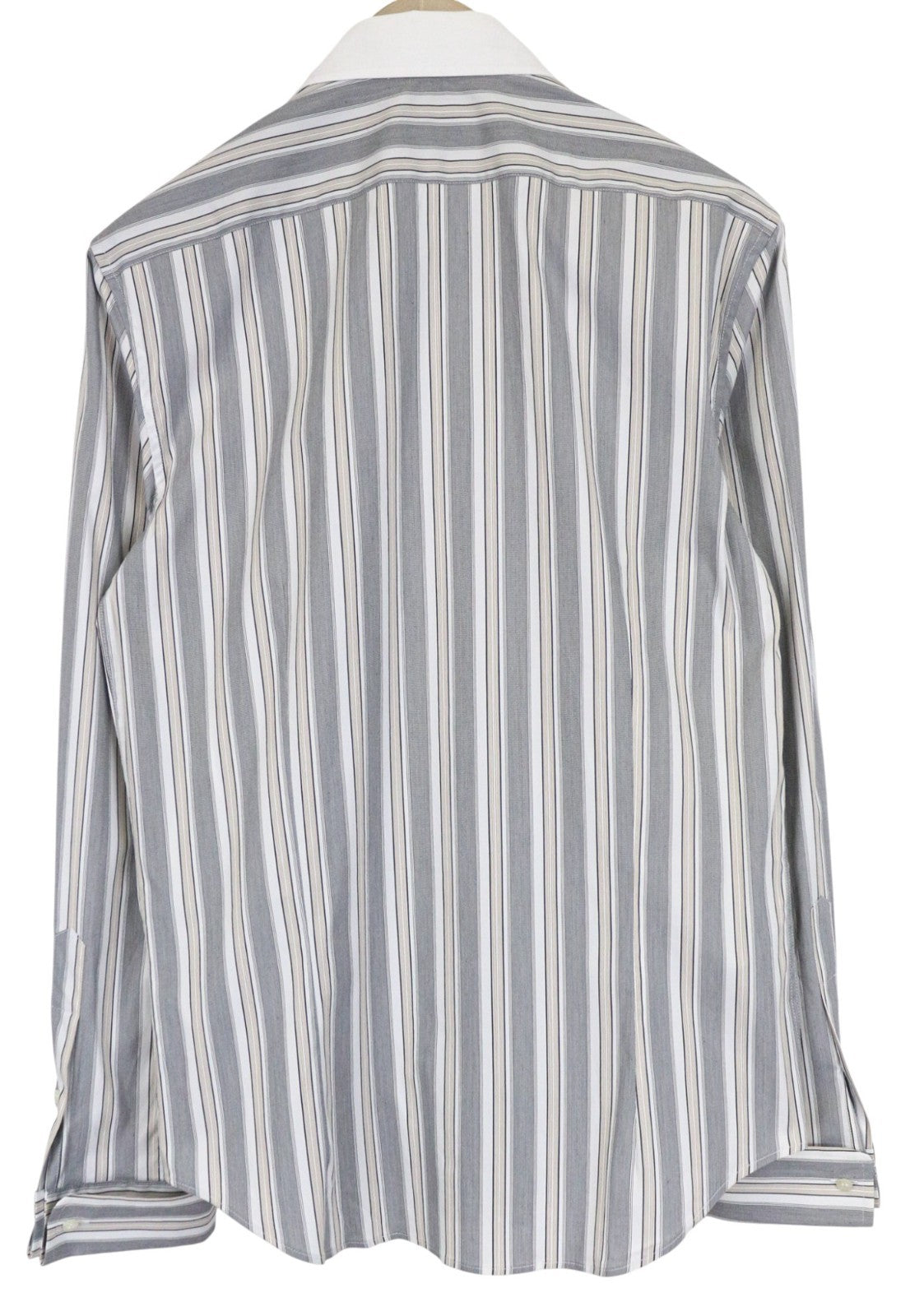 RICHMOND Men's Shirt 48 Grey Striped Stretch Cotton Long Sleeve Classic