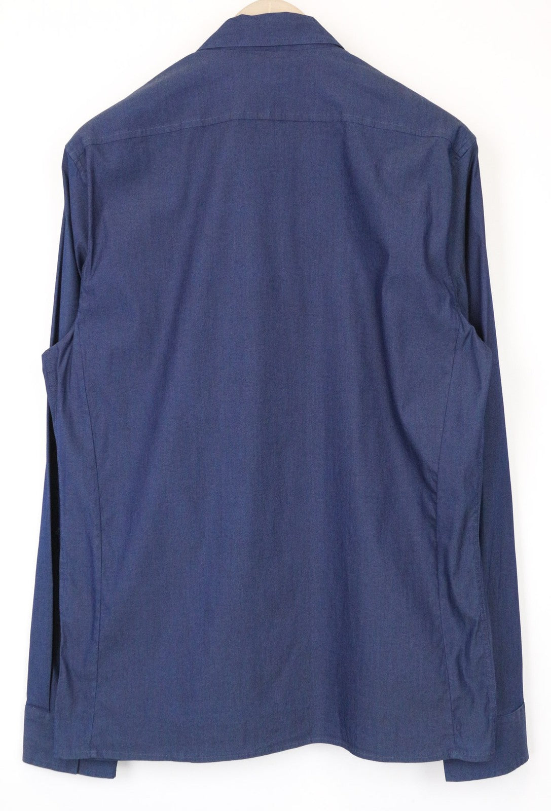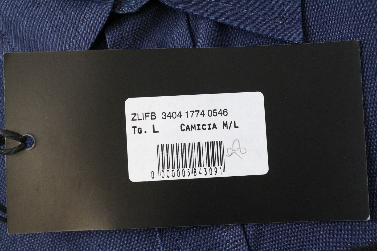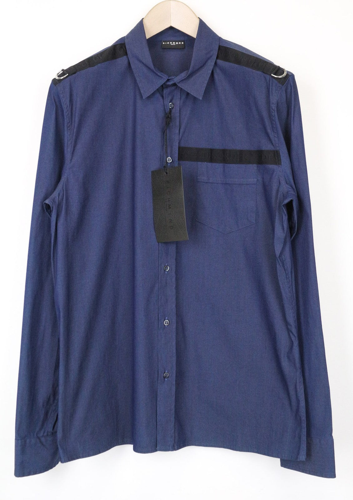 RICHMOND Men's Shirt L Blue Cotton Stretch Collared Long Sleeve Pocketed