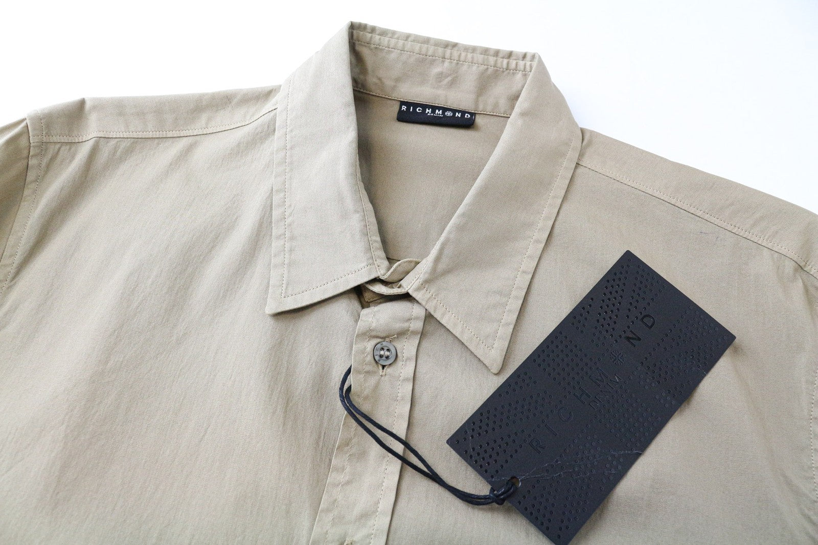 RICHMOND Men's Shirt L Light Brown Cotton Stretch Long Sleeve Buttoned