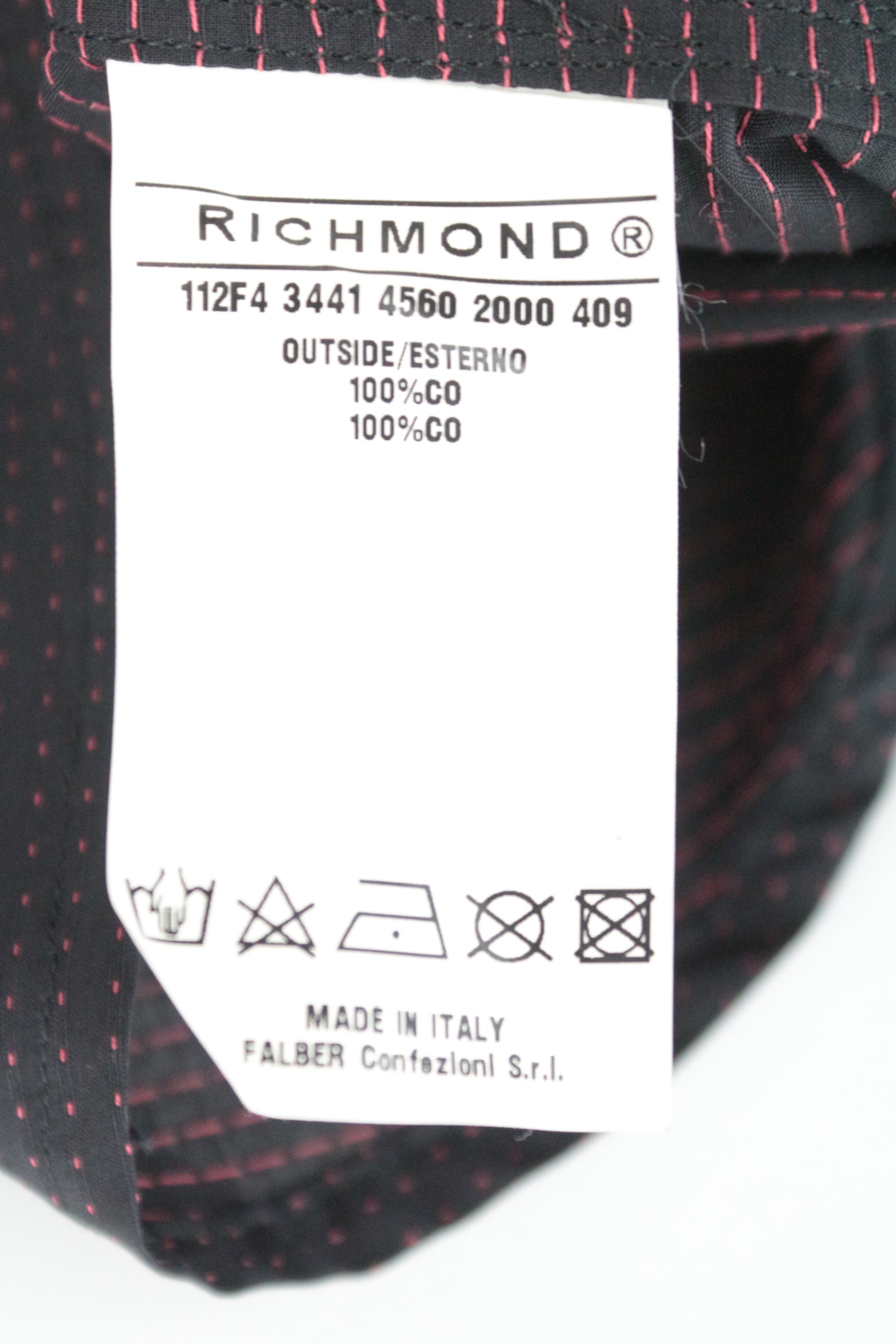 RICHMOND Men's Shirt M/L Navy Dot Pattern Pure Cotton Long Sleeve Button-Up