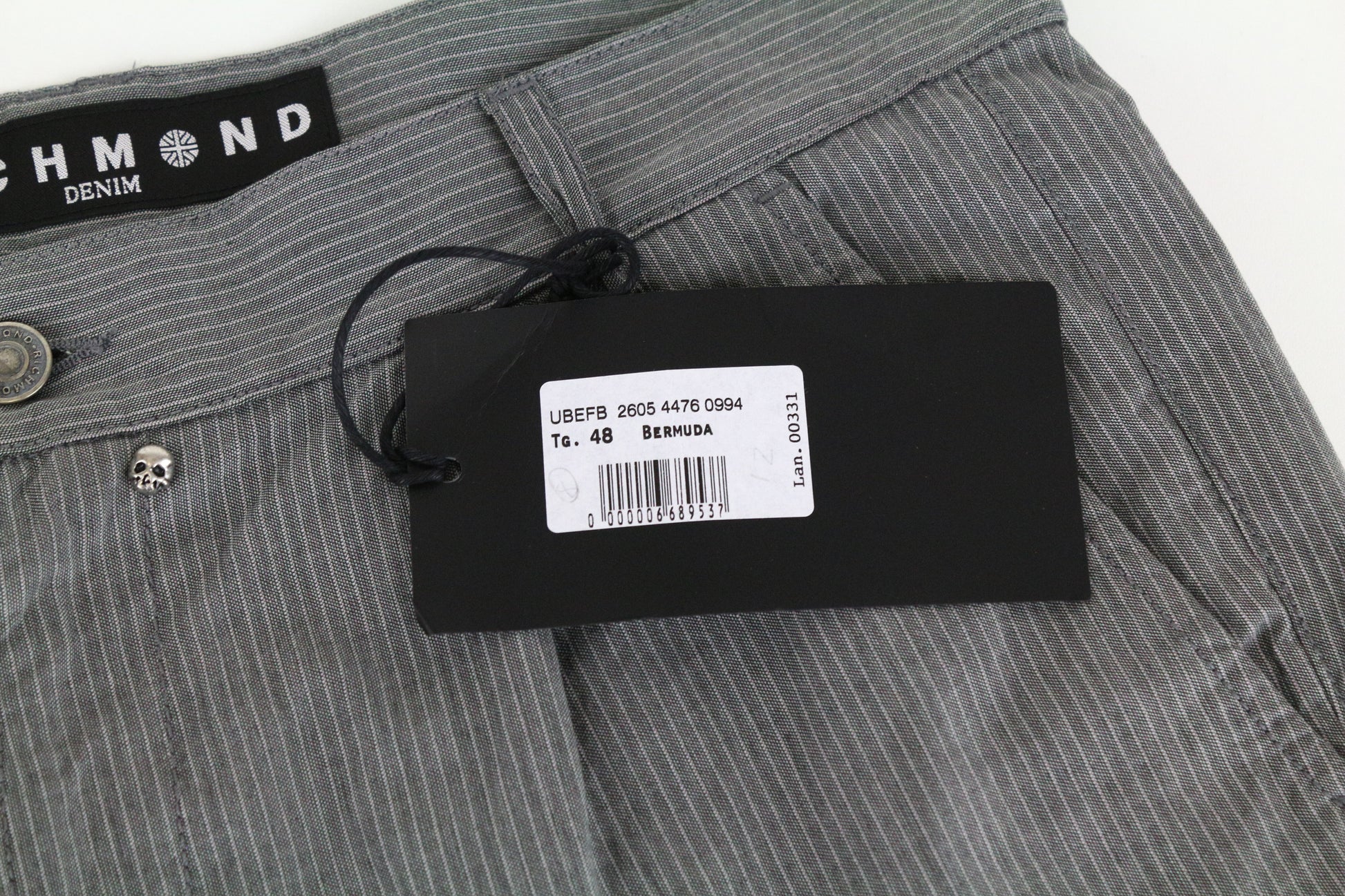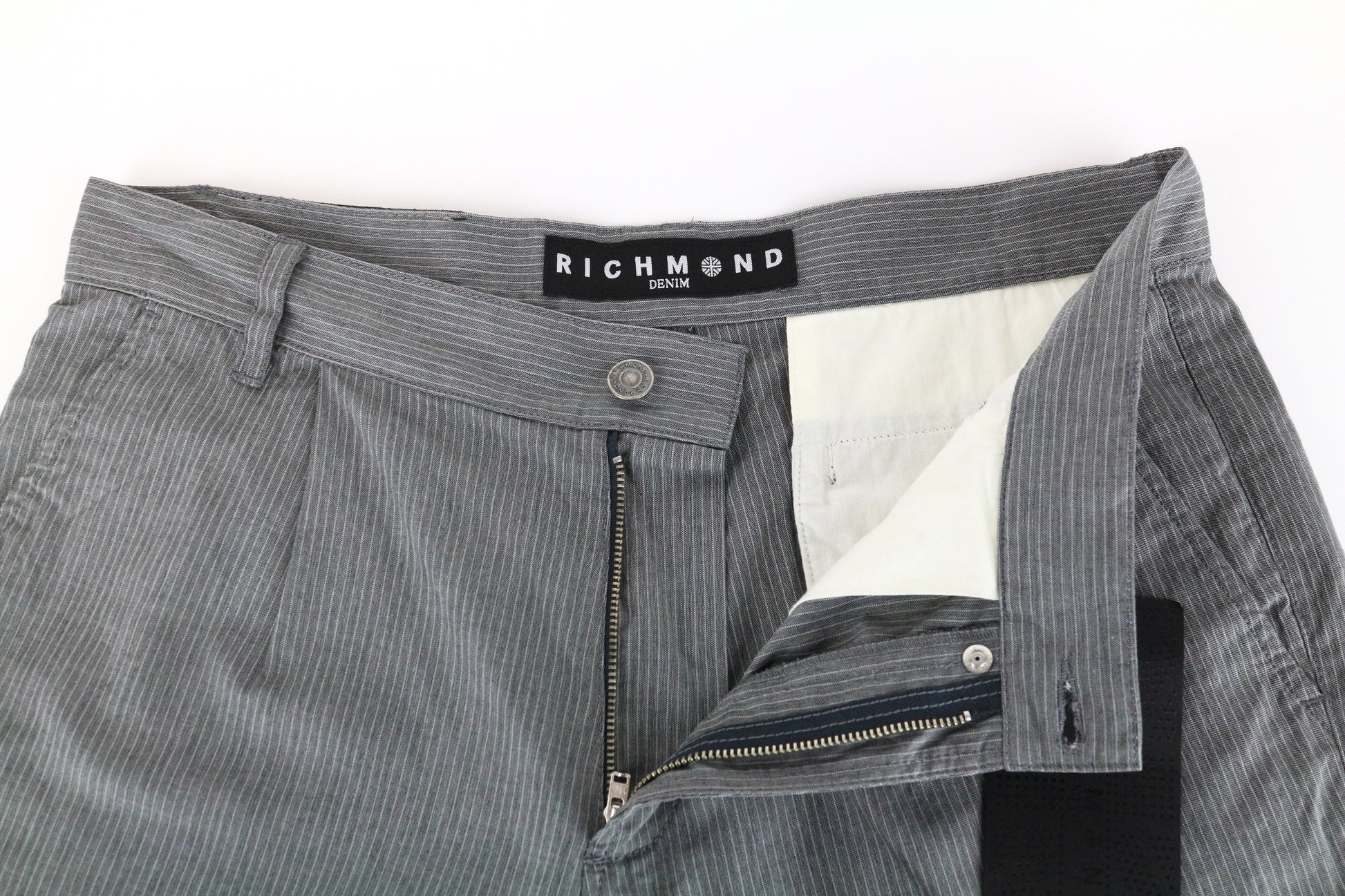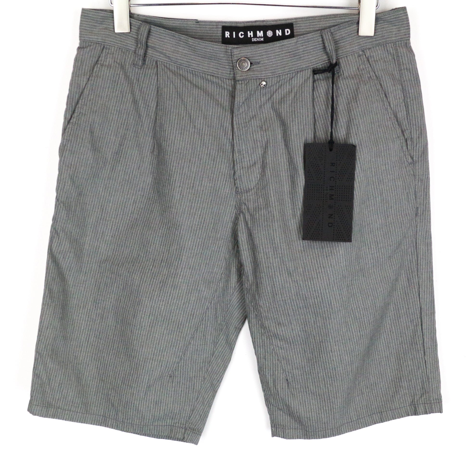 RICHMOND Men's Summer Shorts 48 Grey Cotton Striped Casual Pleated Front