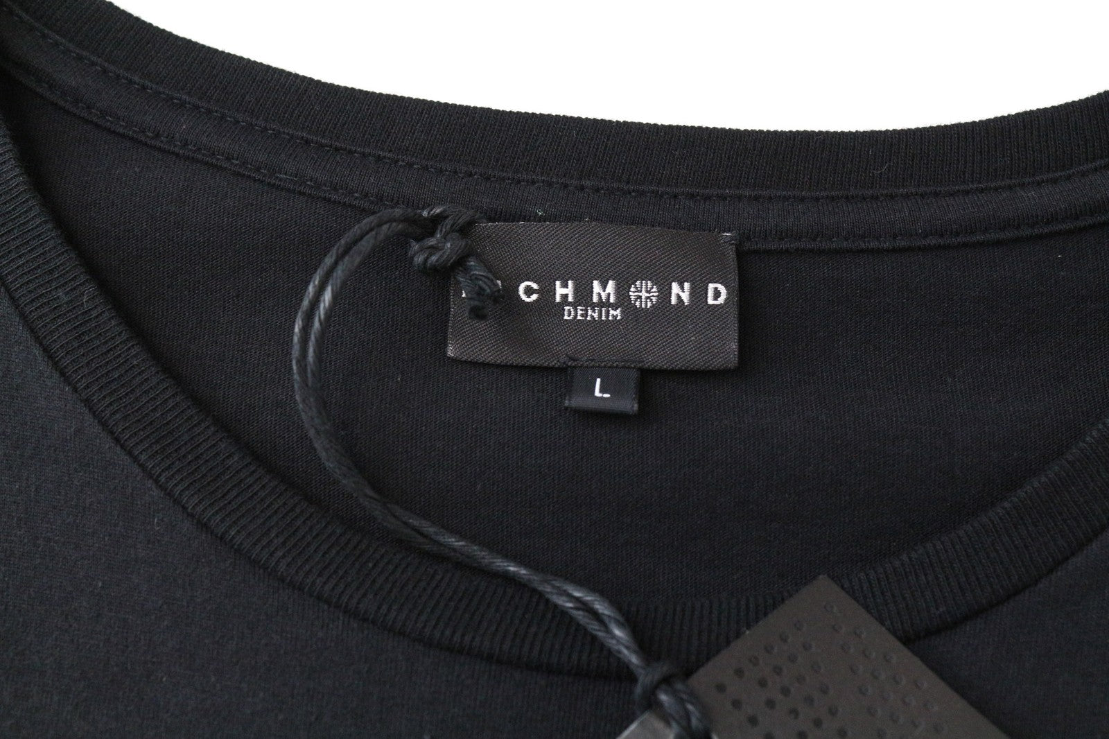 RICHMOND Men's T-Shirt L Black Cotton Logo Print Pullover Long Sleeve Casual