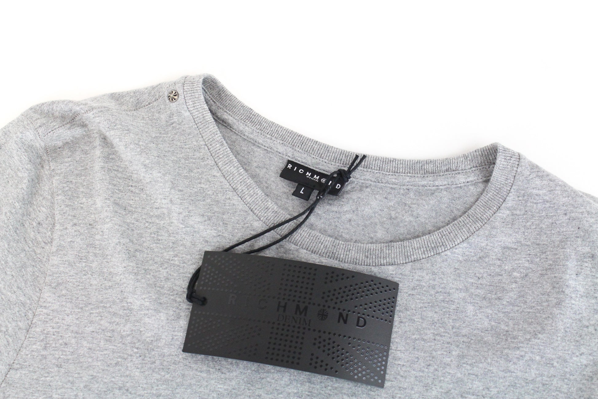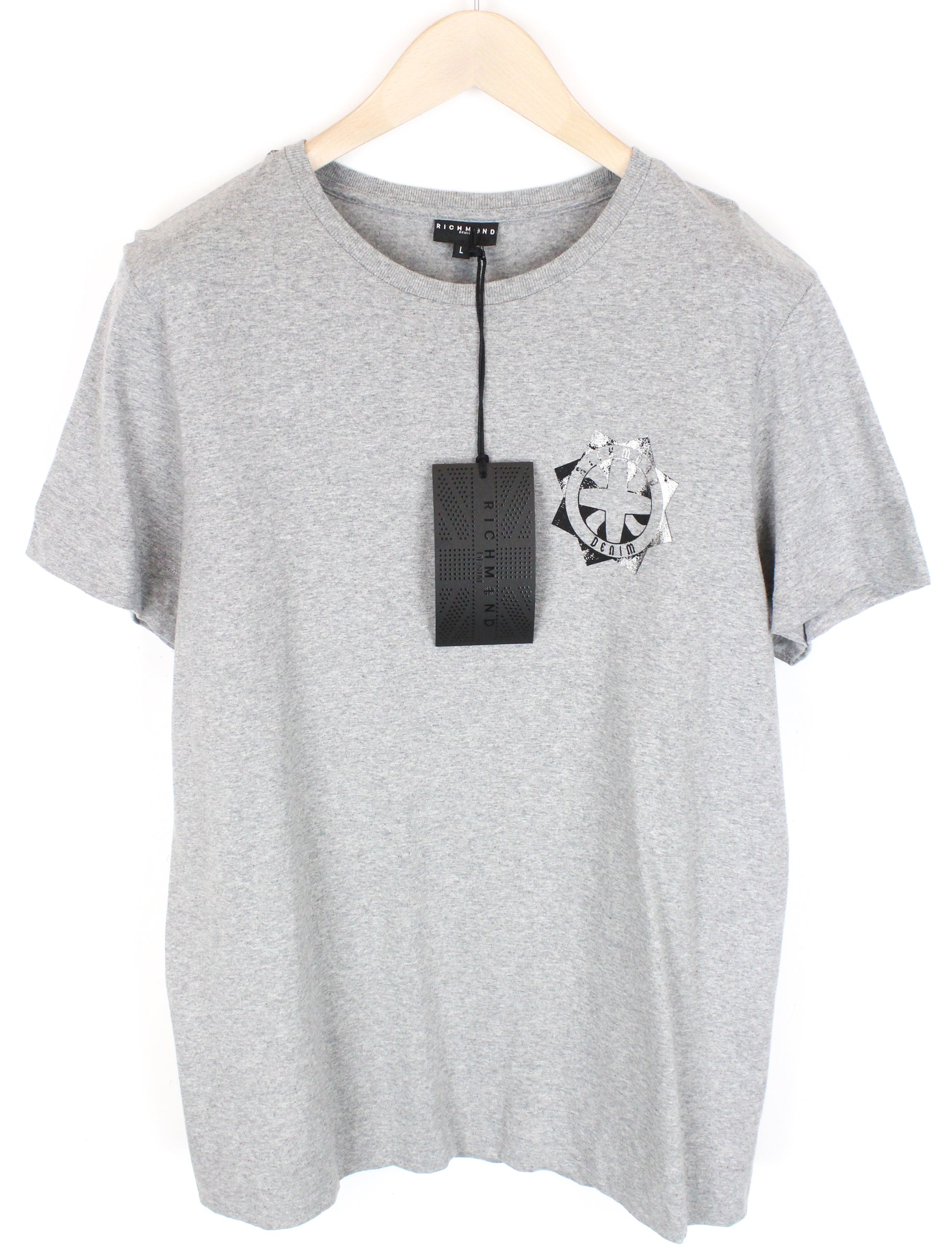 RICHMOND Men's T-Shirt L Grey Short Sleeve Summer Logo Cotton Casual