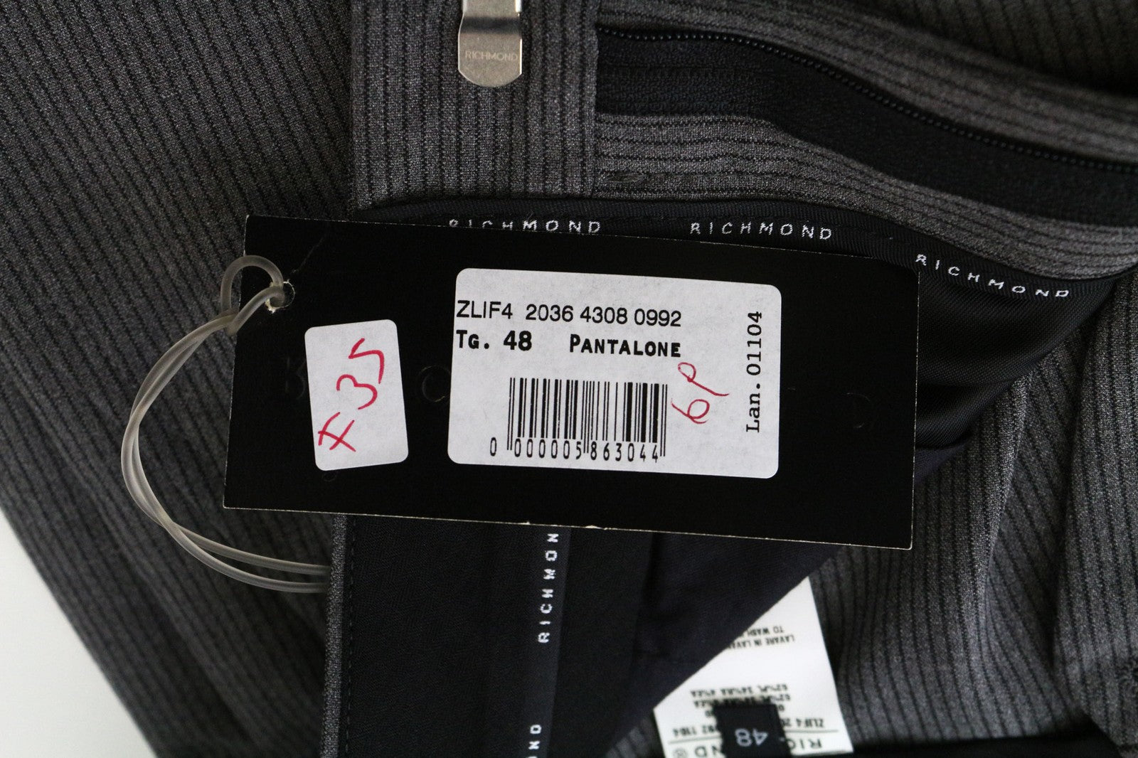 RICHMOND Men's Trousers 48 Grey Striped Pattern Stretch Pleated Classic Design