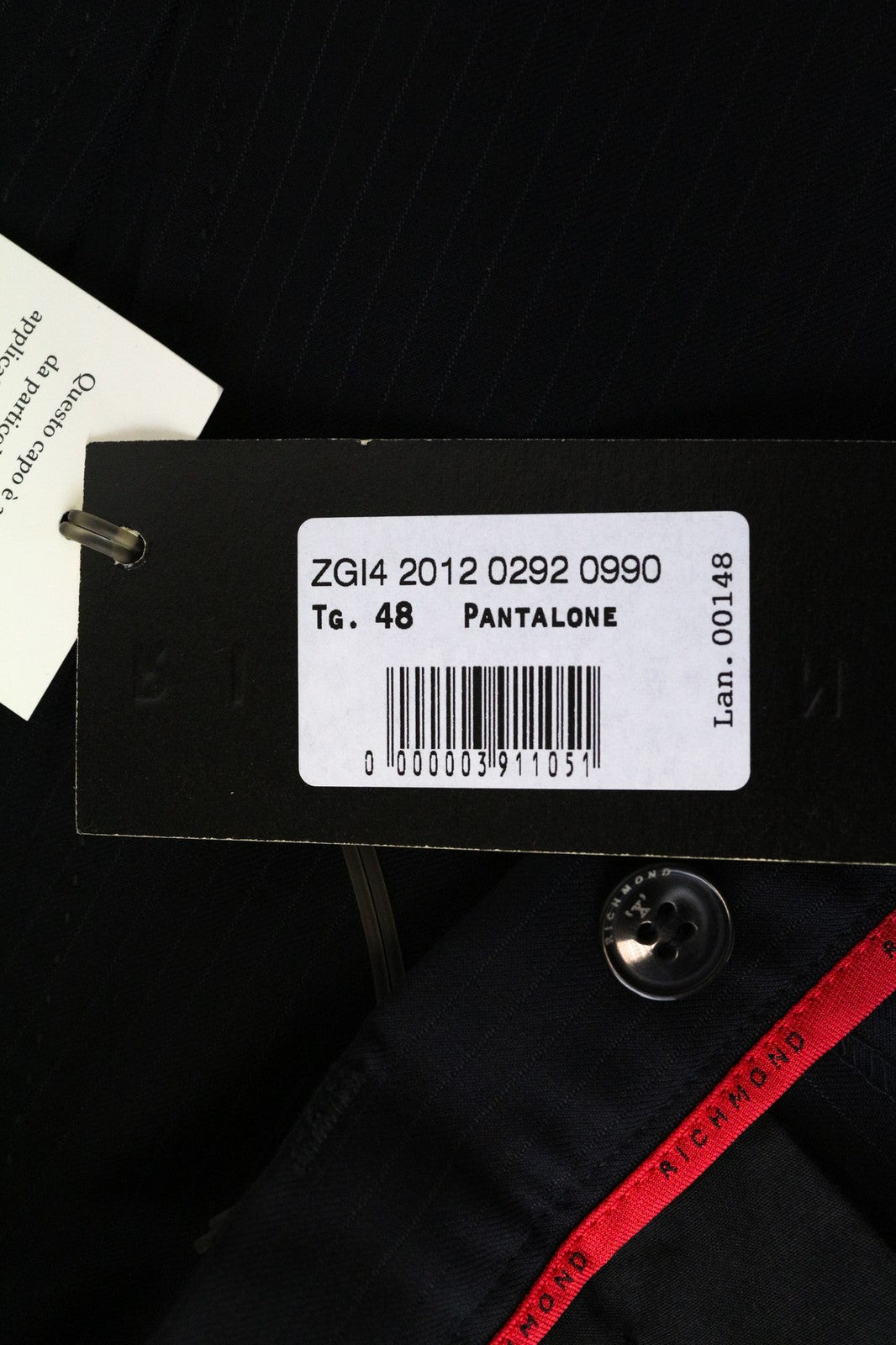 RICHMOND Men's Trousers IT48 Black Cotton Blend Striped Classic Flat-Front