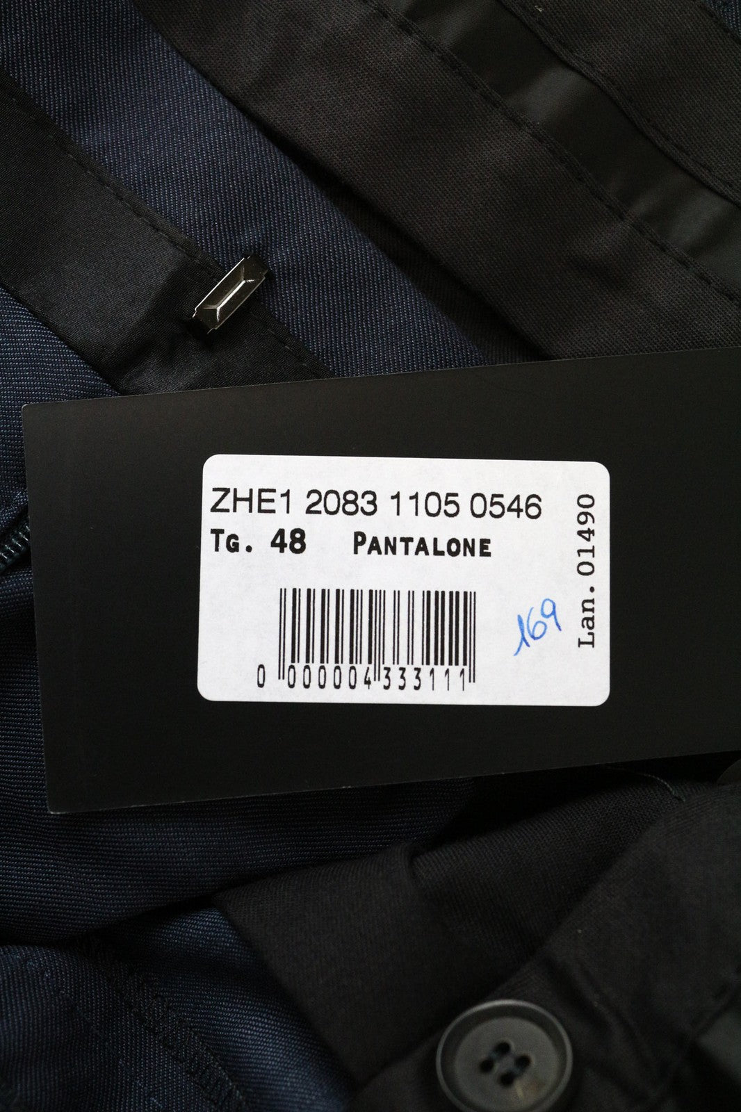 RICHMOND Men's Trousers IT48 Blue Pure Virgin Wool Melange Classic Flat-Front