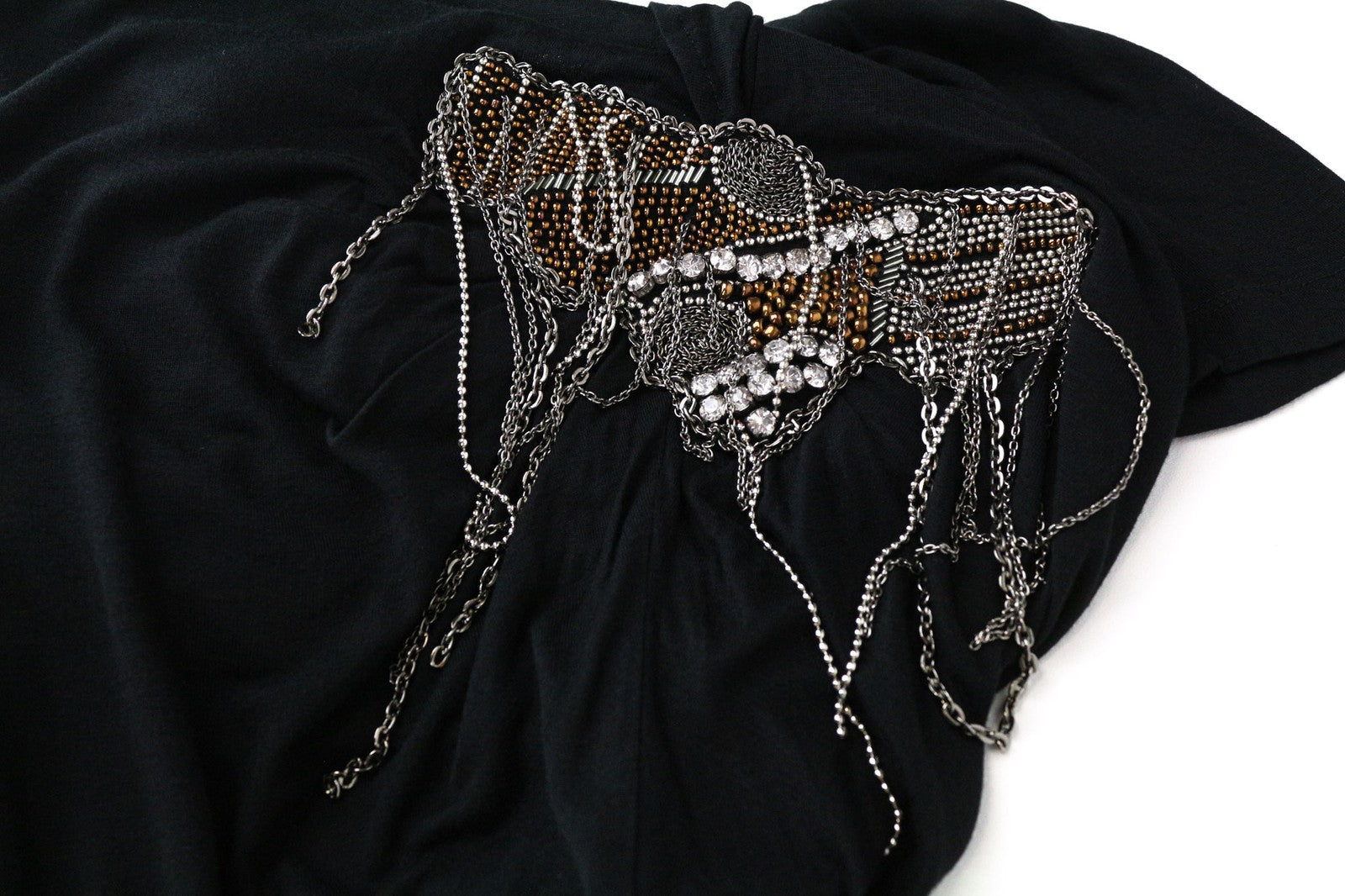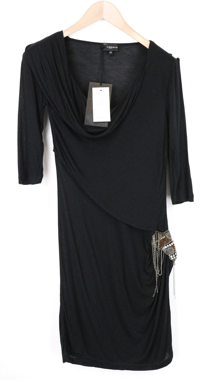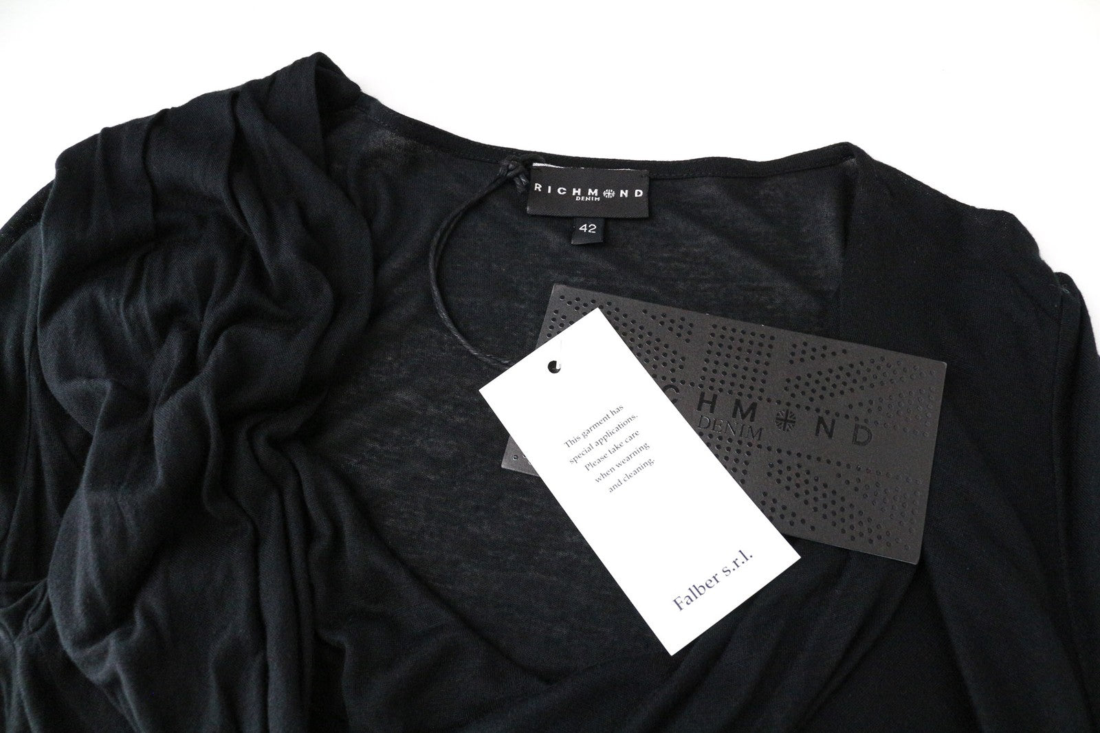 RICHMOND Women's Dress 42 Black 3/4 Sleeve Round Neck Wrap with Detailing