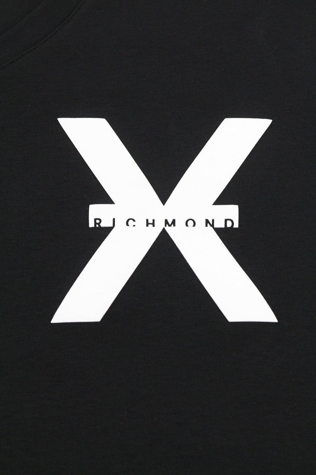 RICHMOND Womens T-Shirt S Black Short Sleeve V-Neck Print All Seasons