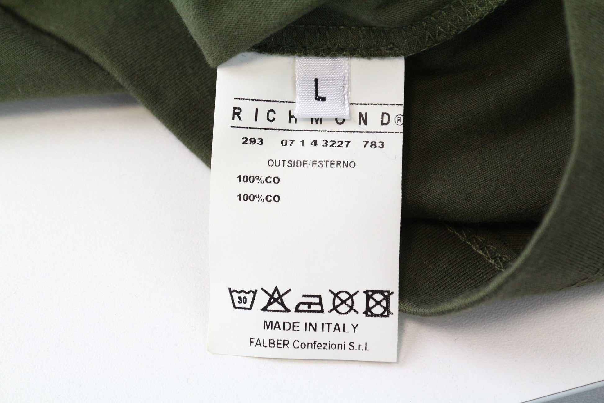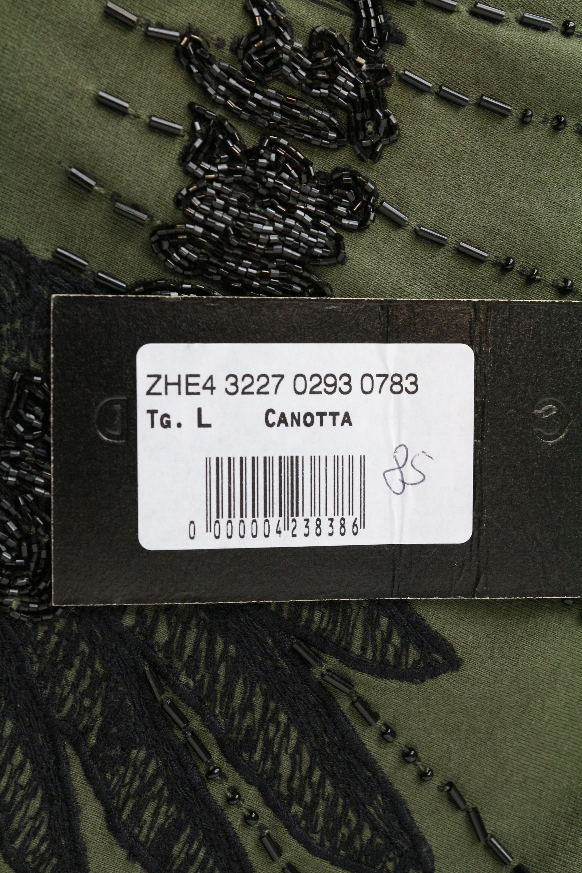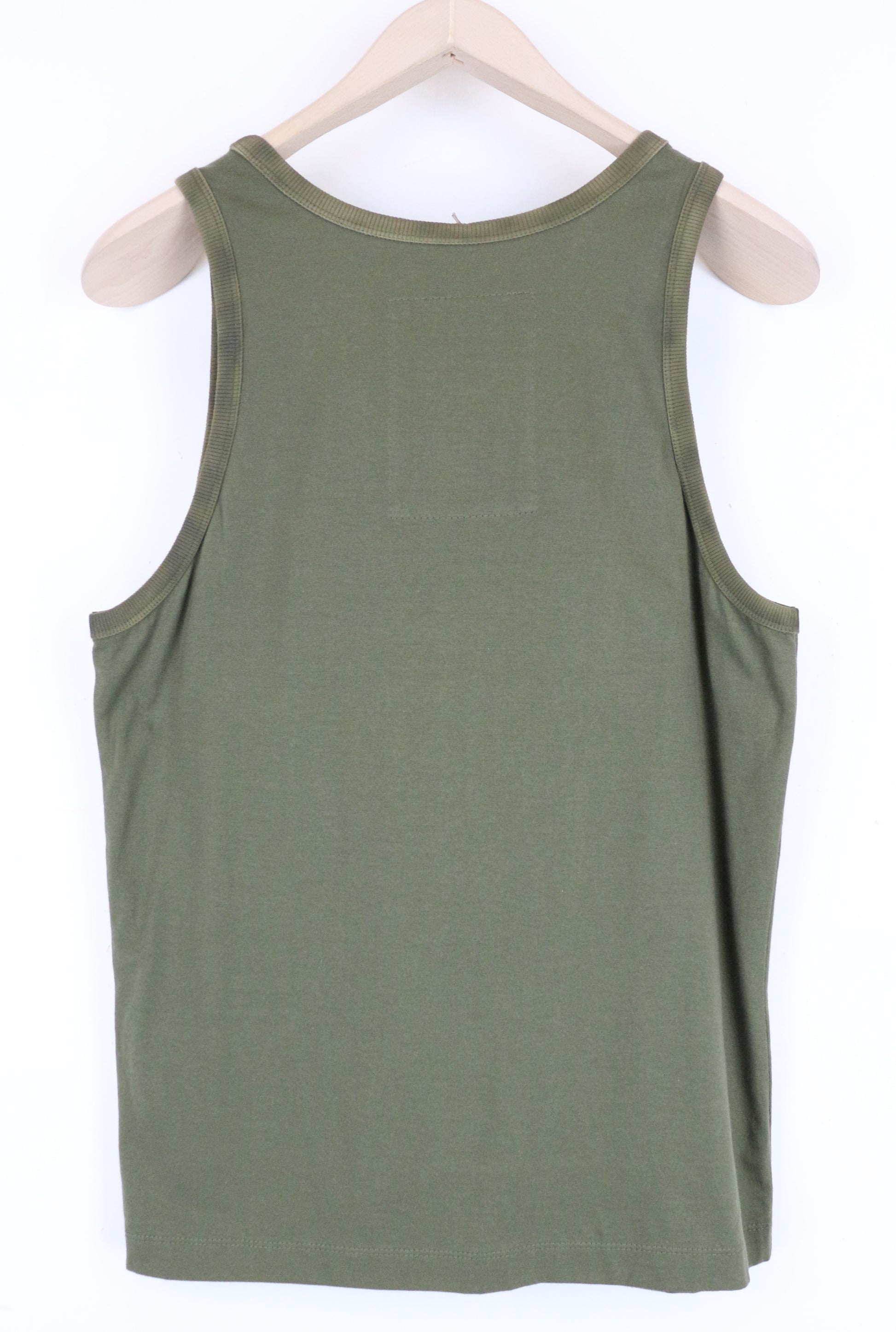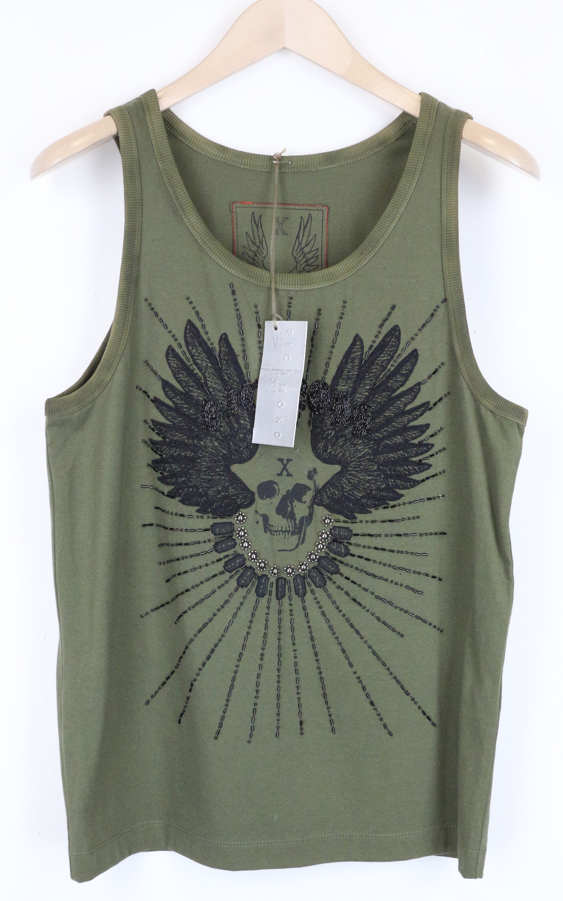 RICHMOND X Men's T-Shirt L Printed Beaded Front Khaki Green Sleeveless