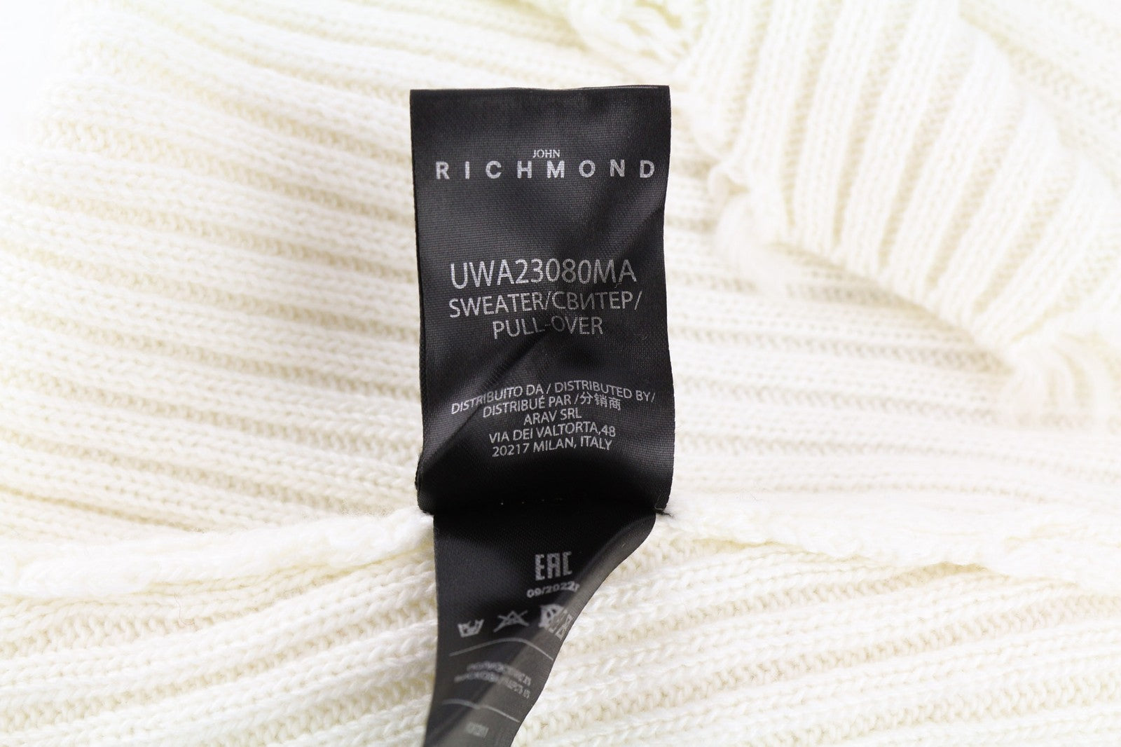 RICHMOND X Women's Jumper S White Sugar Knit Long Sleeve Distressed Pullover