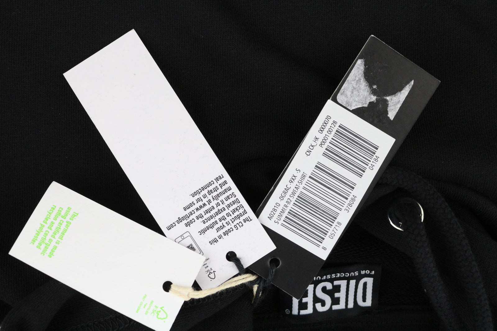 RRP150 DIESEL S-Ummer-B2 Hoodie S Black Pullover Kangaroo Pocket Unisex