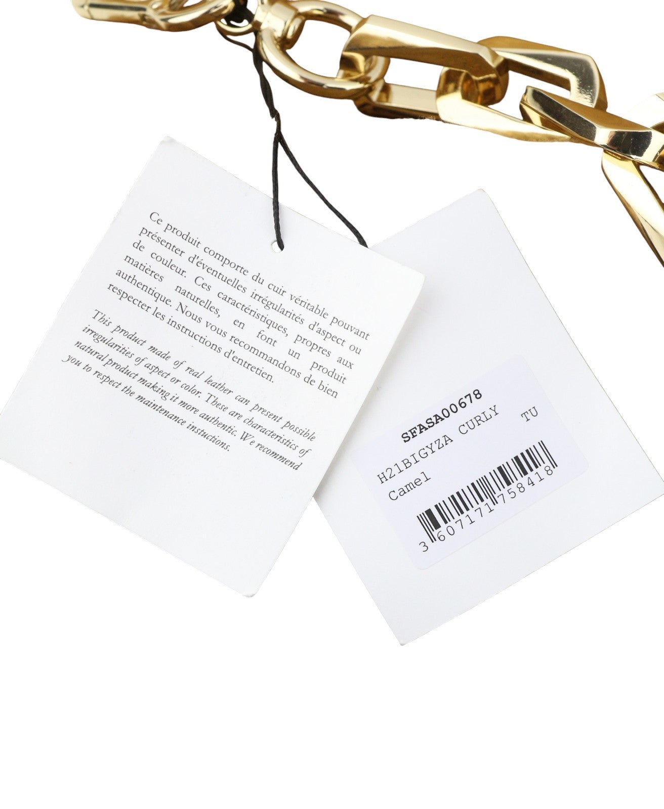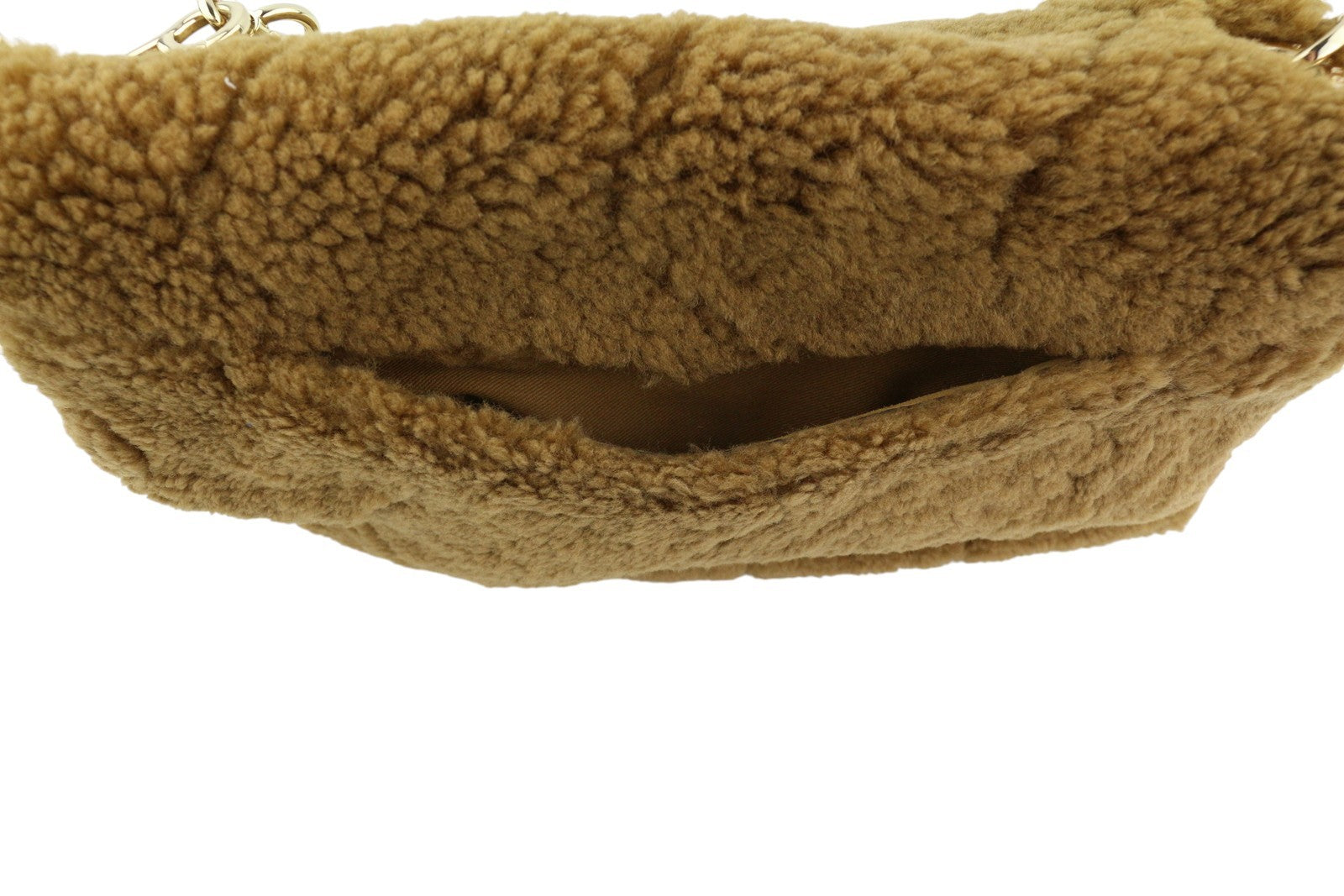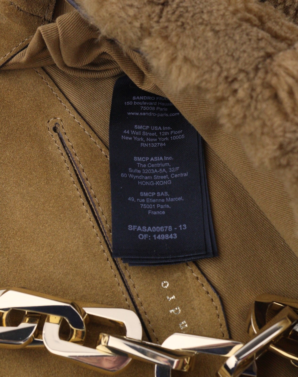 SANDRO Big Yza Curly Women Bag OS Camel Shearling Chain-Link Shoulder RRP475