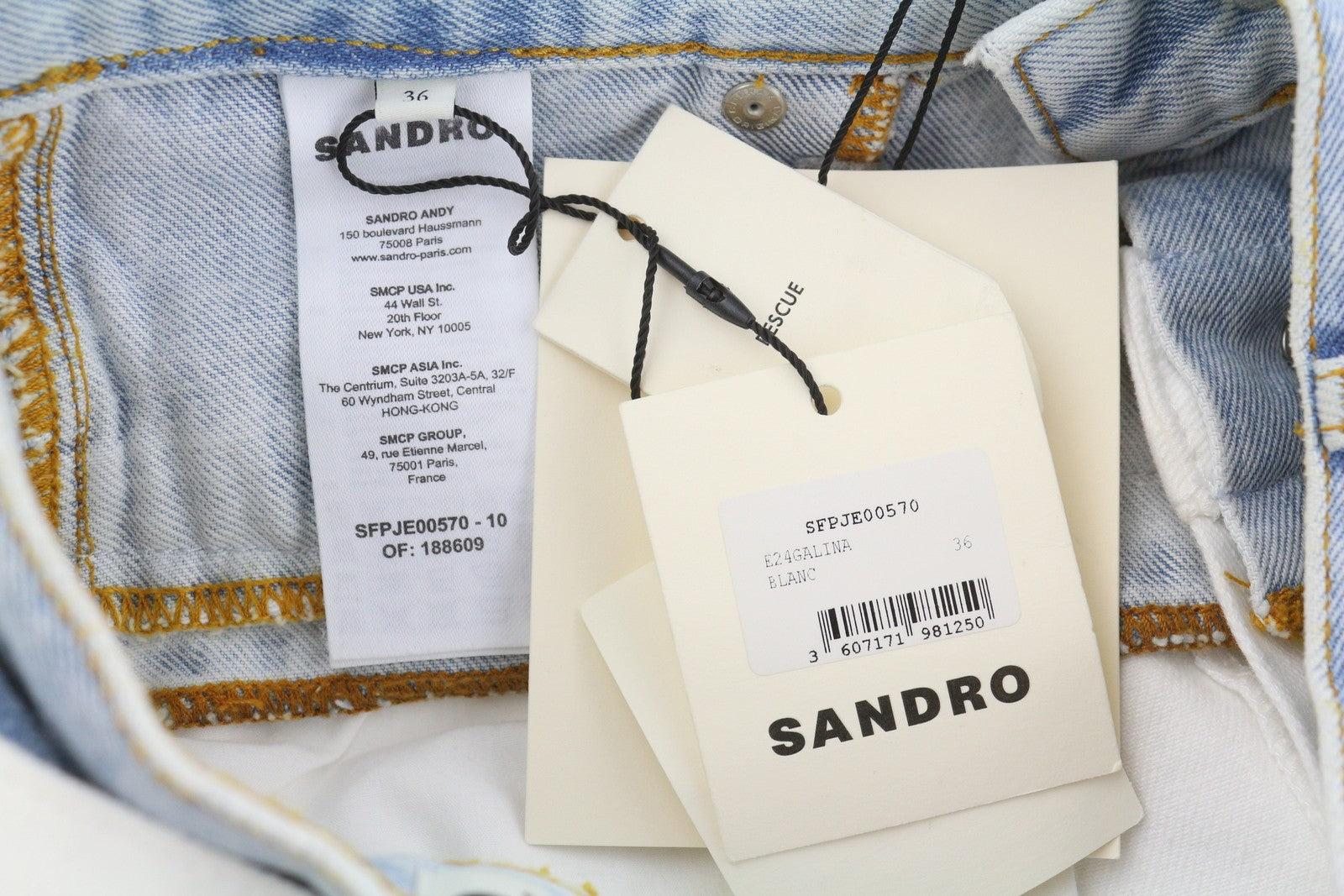 SANDRO Galina Women Jeans 36 S White Double High Rise Straight Fit RRP340