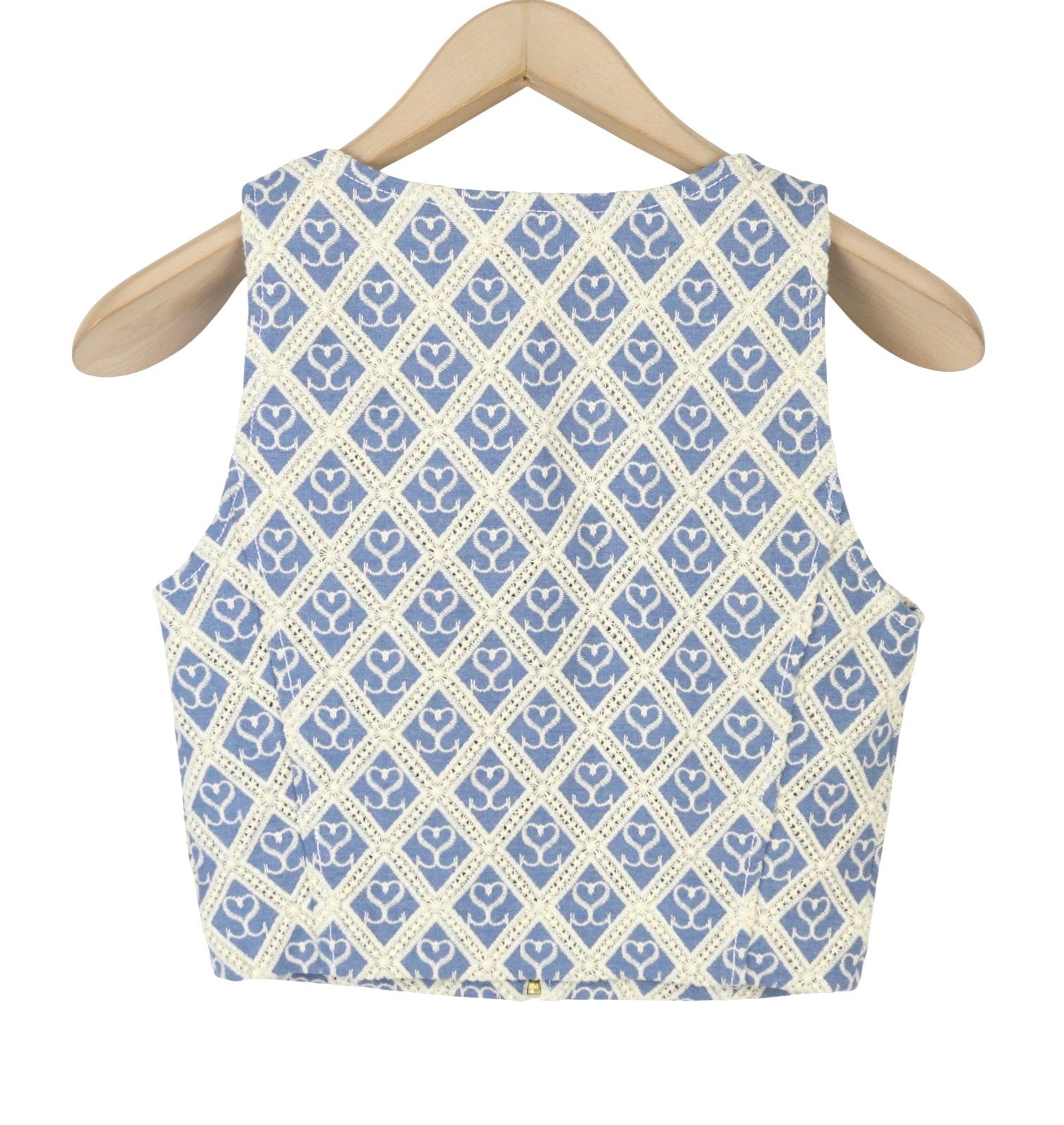 SANDRO Mafalda Women Set 36 S Blue Embroidered Guipure Cropped 2 Piece