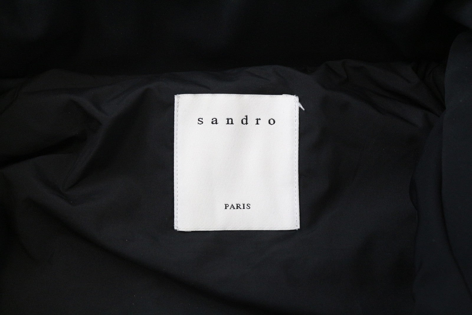 SANDRO Men's Jacket XS Black Tech Parka Hooded Drawstring Stretch Outerwear