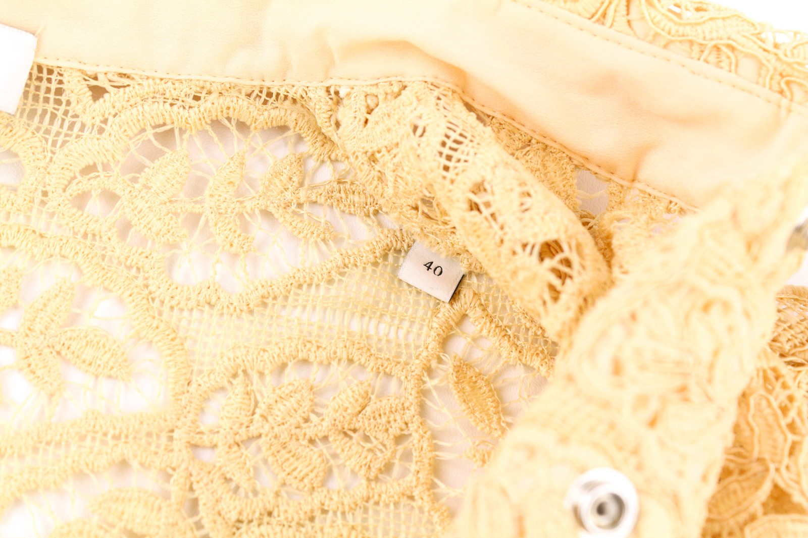 SANDRO Women's Dress EU40 Beige Lace Embroidered Button Mini Short Sleeve