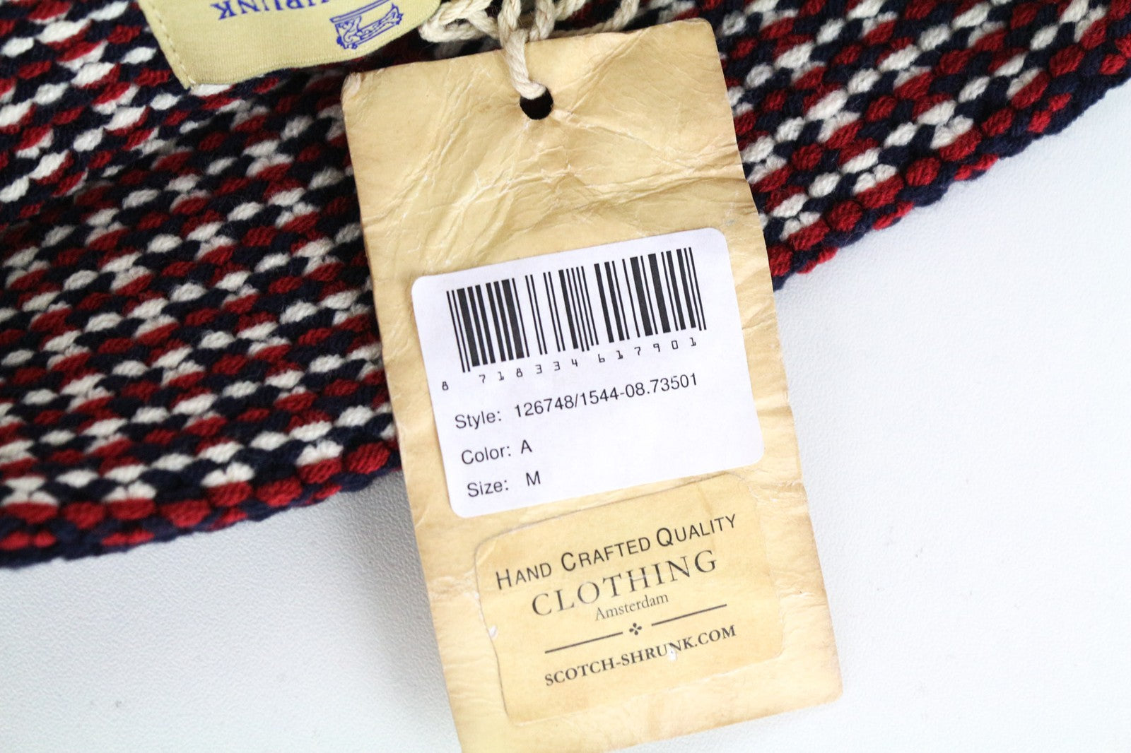 SCOTCH SHRUNK Boys Hat M Red Navy Patterned Pom Pom Knit Beanie