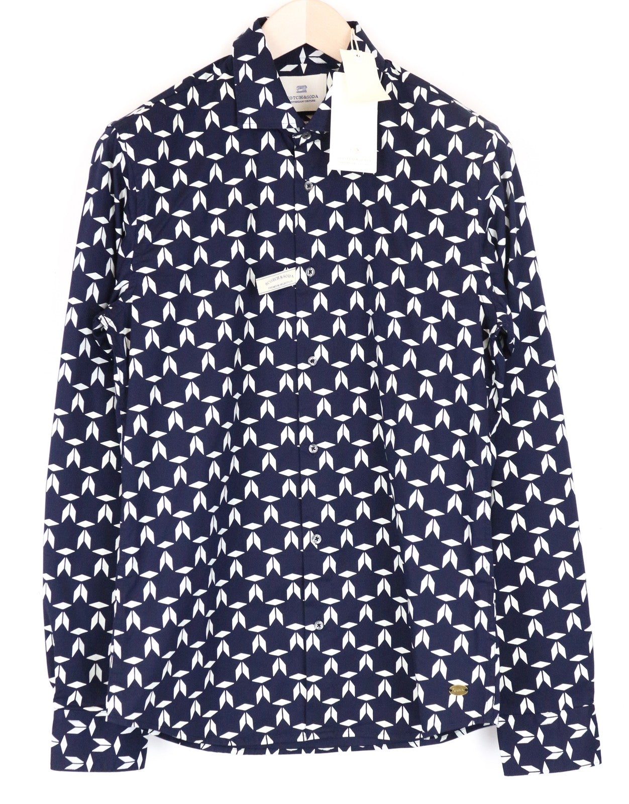SCOTCH & SODA Ams Couture Men's Shirt M Slim Navy Pattern Cotton Blend Stretch