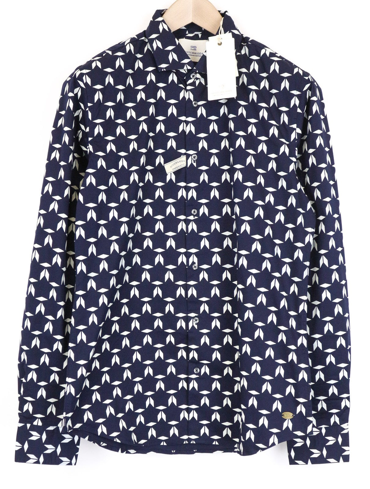 SCOTCH & SODA Ams Couture Men's Shirt M Slim Navy Stretch Cotton Patterned