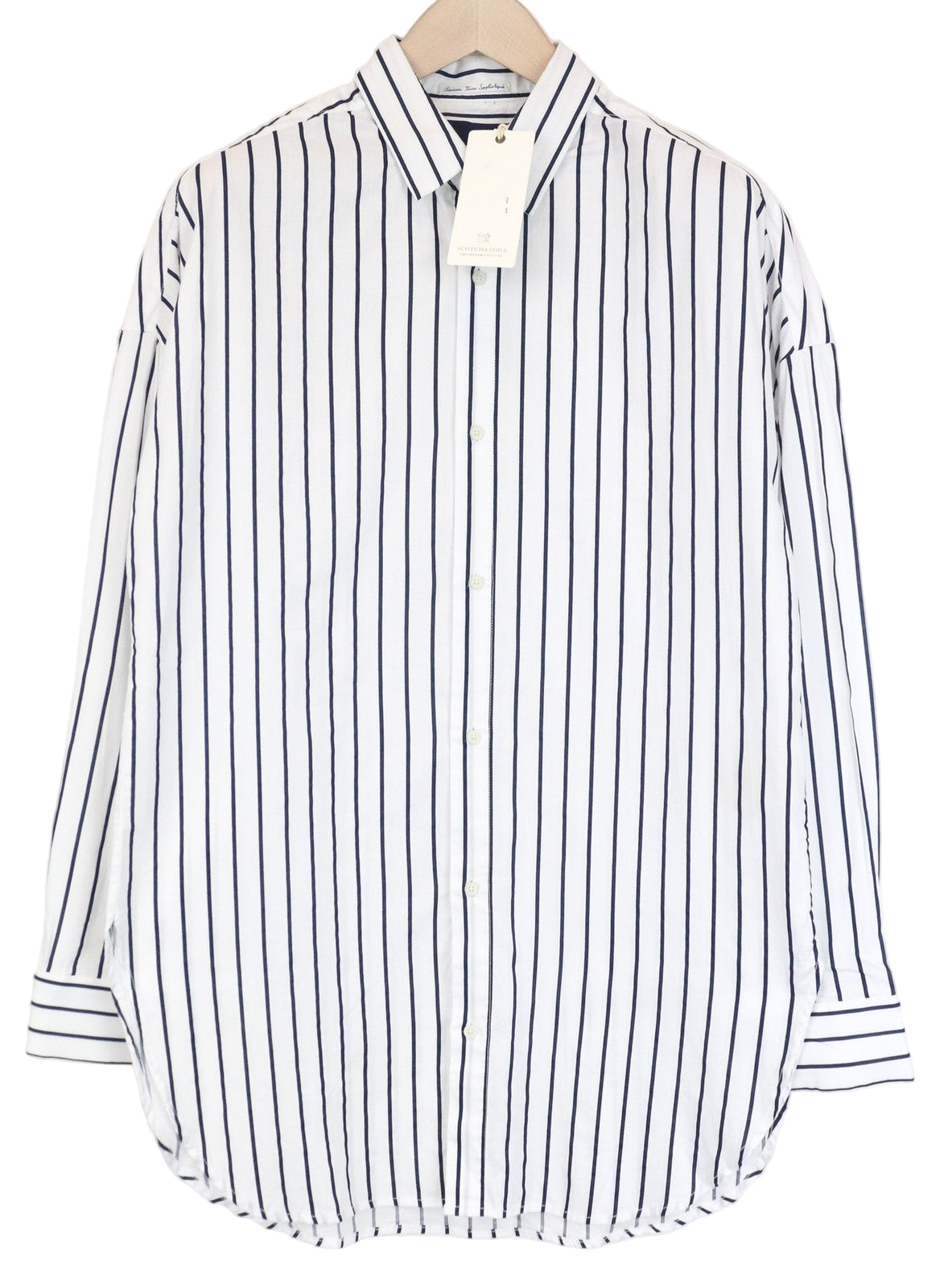 SCOTCH & SODA Ams Couture Men's Shirt M White Navy Stripe Cotton Long Fit Top