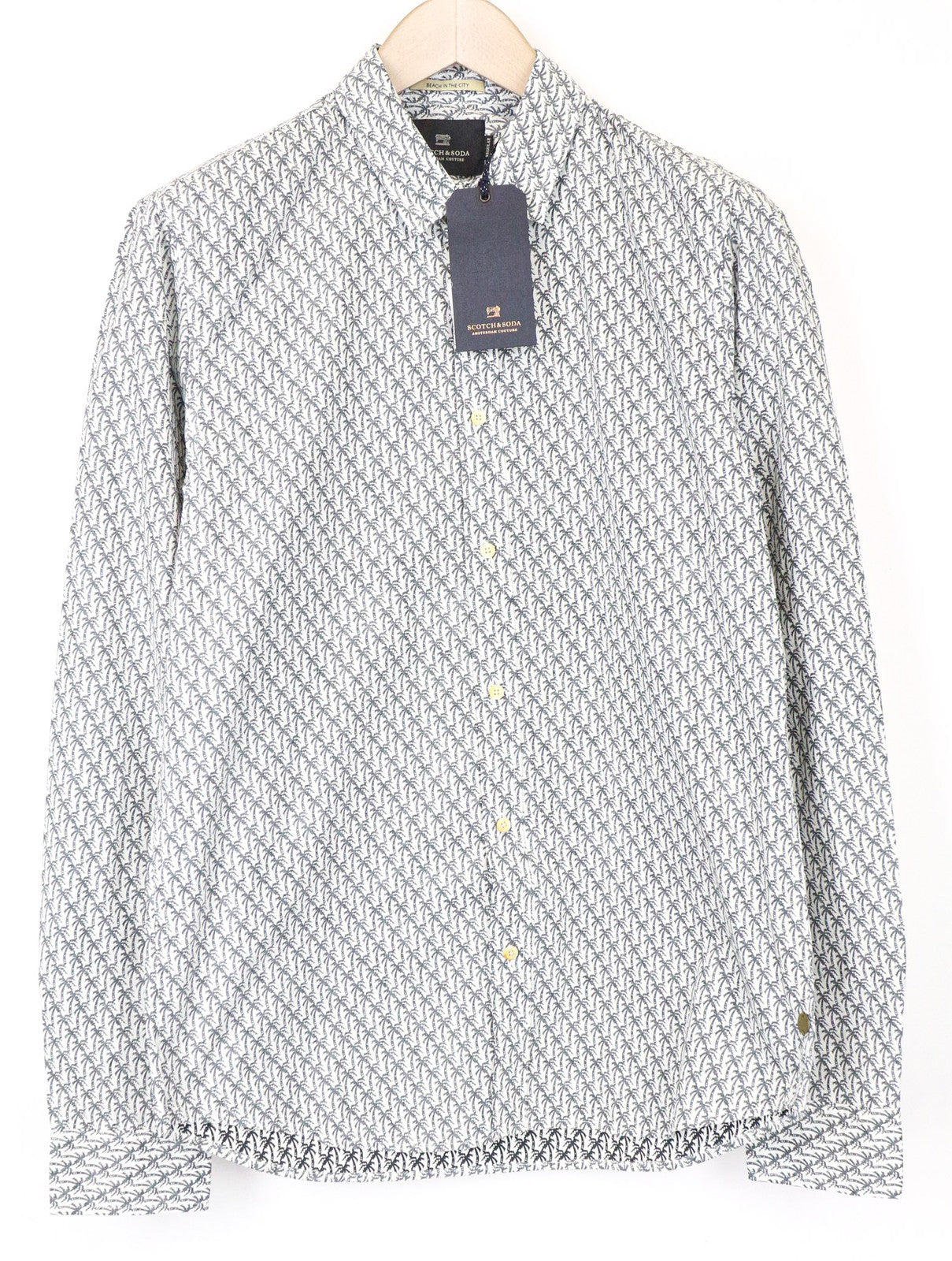 SCOTCH & SODA Ams Couture Men's Shirt M White Palm Pattern Cotton Long Sleeve