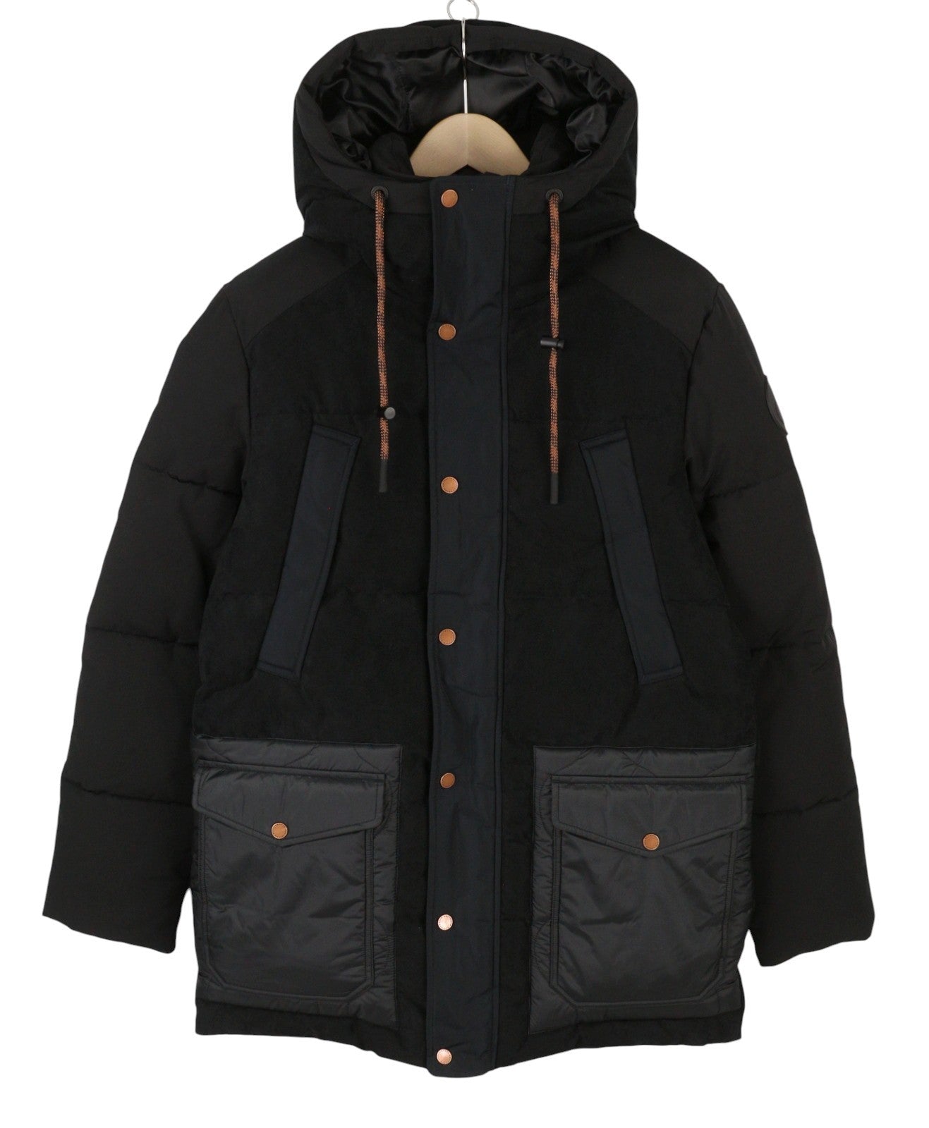 SCOTCH & SODA Arza Men Jacket S Black Padded Mixed Media Quilted Parka RRP389