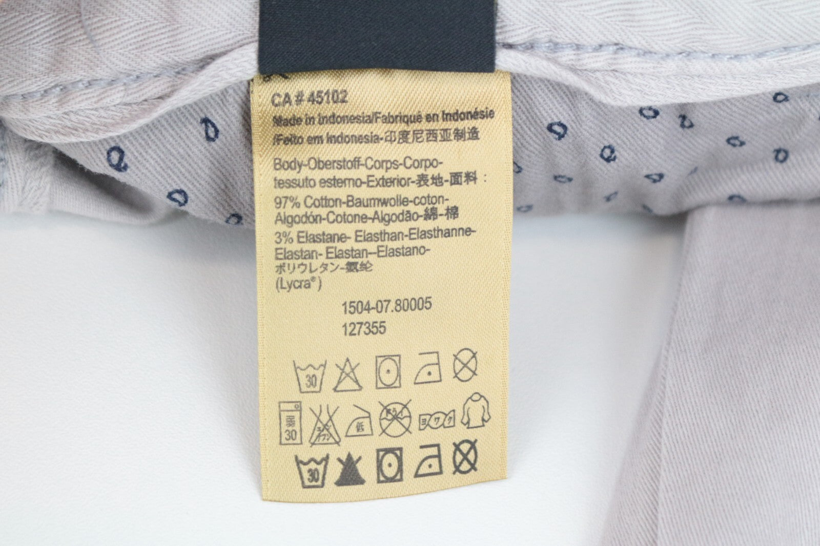 Condition: New with defects. Torn belt. Scratched label at the back of the waist. Stained right leg and a pulled thread on the left one. Please see added photos.