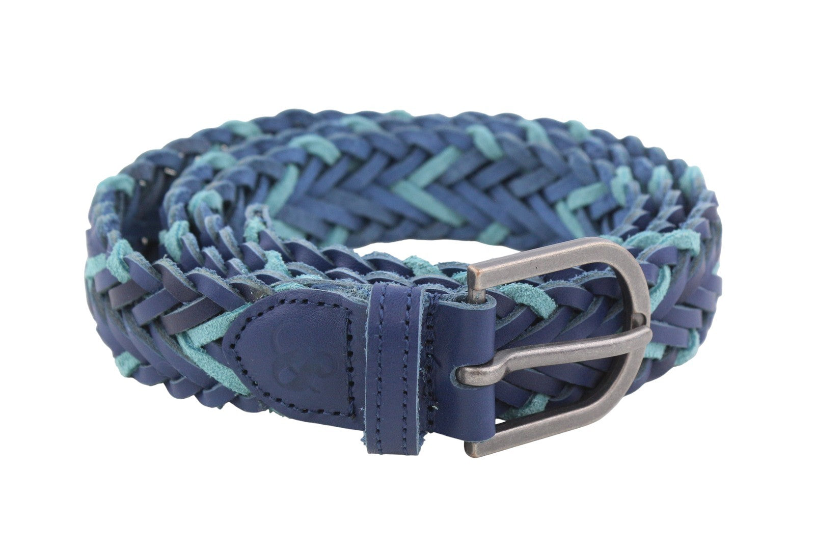 SCOTCH & SODA Men Belt 121 CM Blue Leather Braided Silver Tone Buckle Closure