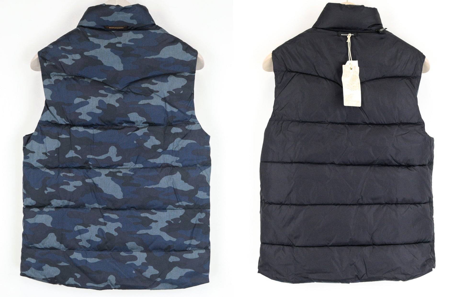 SCOTCH & SODA Men Gilet S Blue Military Pattern Reversible Casual Waistcoat
