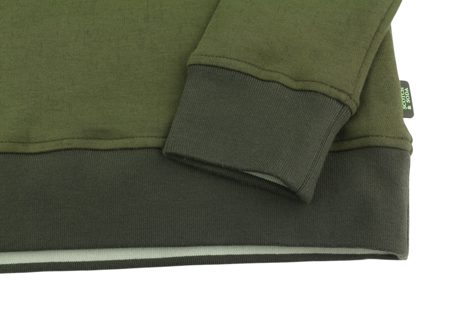 SCOTCH & SODA Men Hoodie M Green Padded Hood Patch Pocket Half Zip Pull On