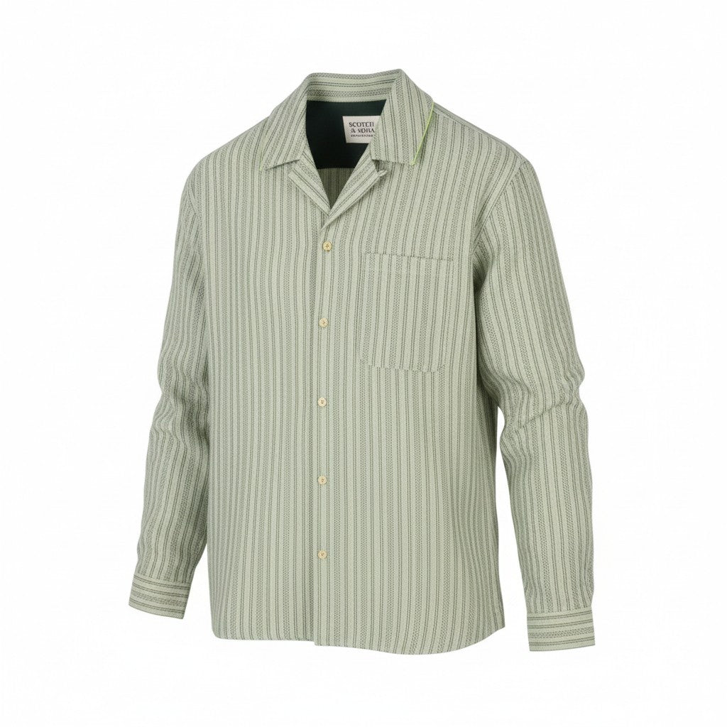 SCOTCH & SODA Men Shirt L Green Pinstriped Thick Button-Up Patch Pocket