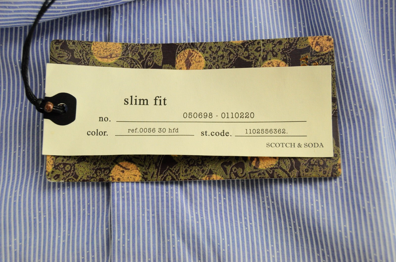SCOTCH & SODA Men Shirt S Slim Fit Blue Striped Cotton Long Sleeve