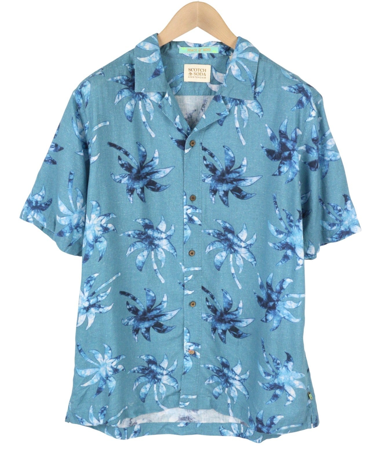 SCOTCH & SODA Men Shirt XL Blue Patterned Button-Up Notch Short Sleeve