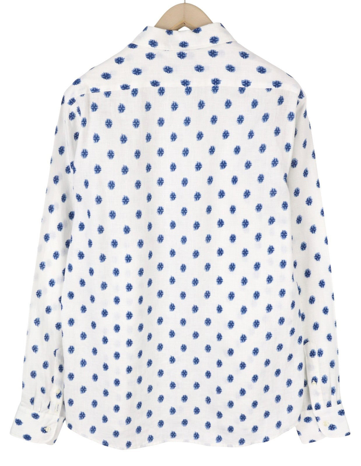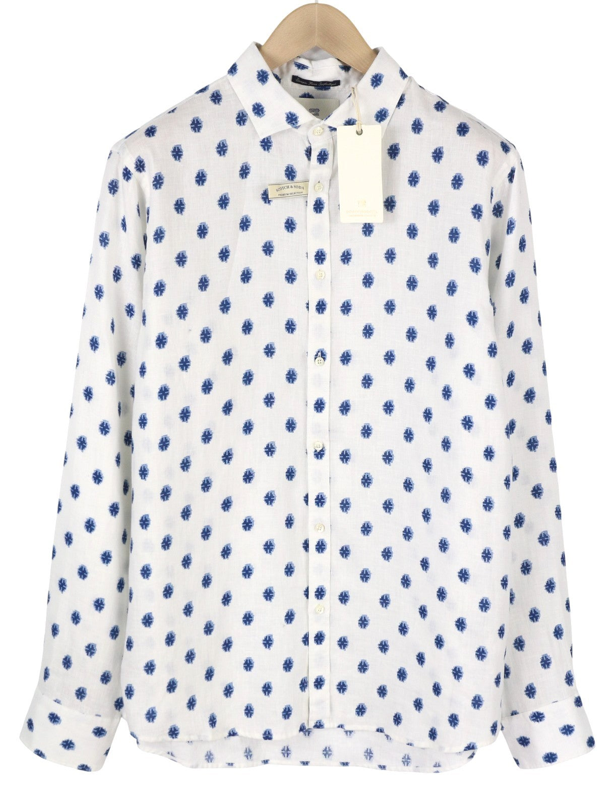 SCOTCH & SODA Men Shirt XL White Patterned Linen Cutaway Button-Up Logo Casual